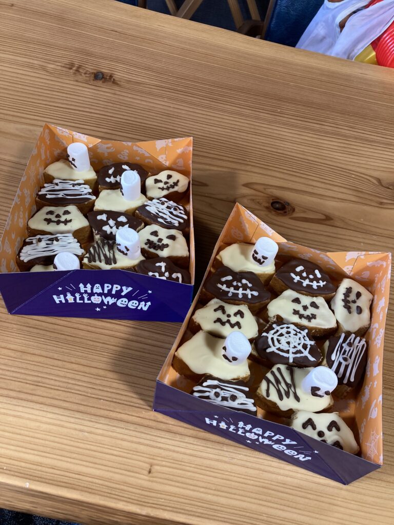 バウムクーヘンにハロウィンのお顔がついていて、とっても可愛いです🎃
