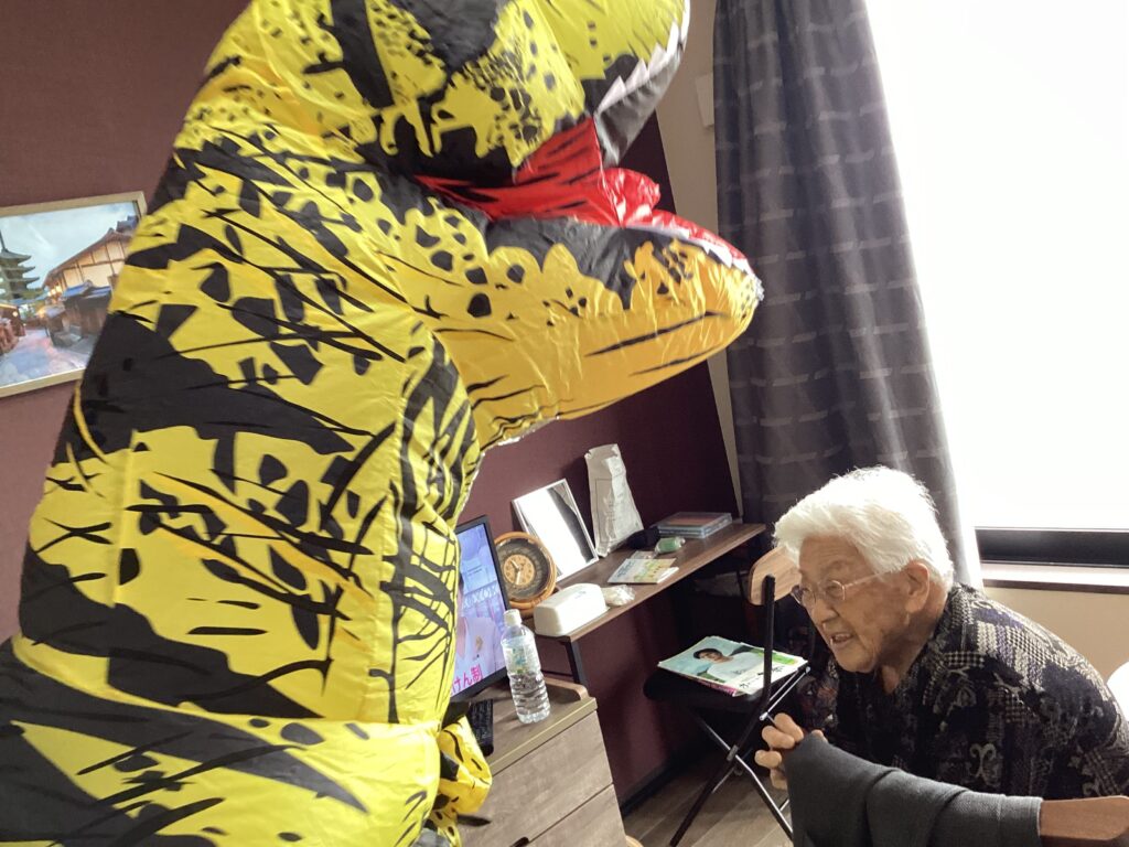 なんと!サプライズでみさきザウルスも登場しました🦖抱きつく利用者さんもいて、大人気☺️🧡