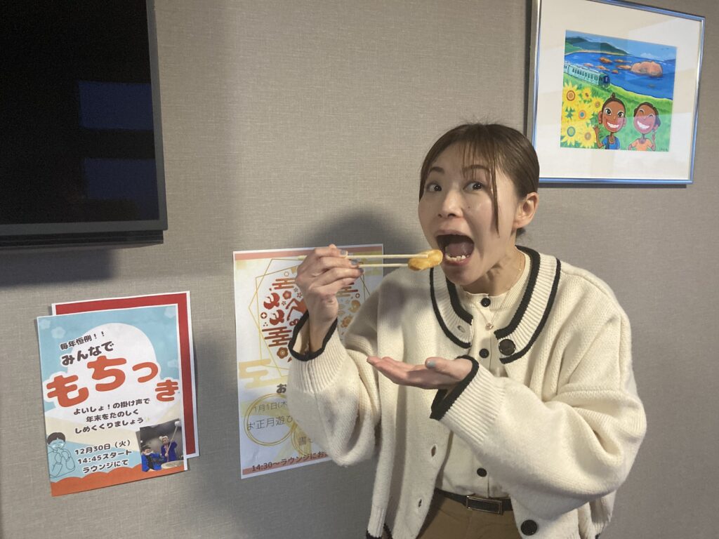 つきたてのお餅はとても柔らかく、ご利用者からも「美味しいね」「やっぱりつきたては違うね」と大好評。