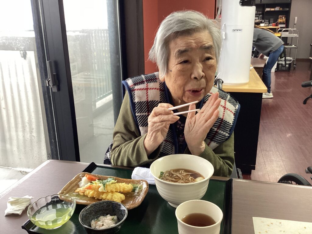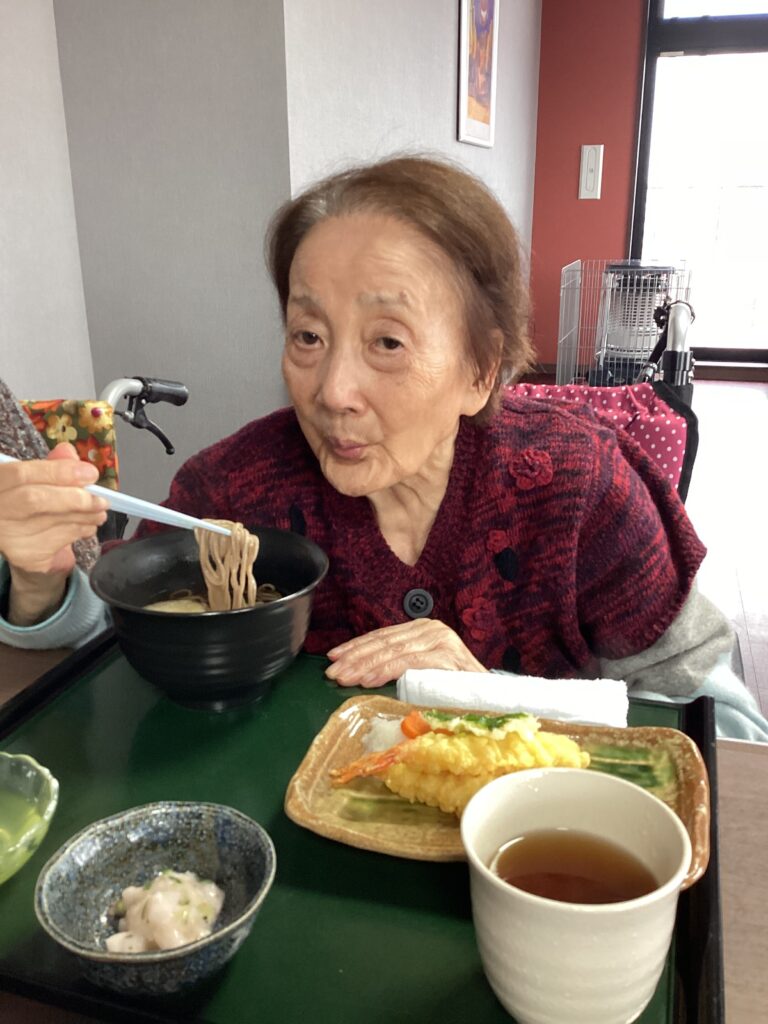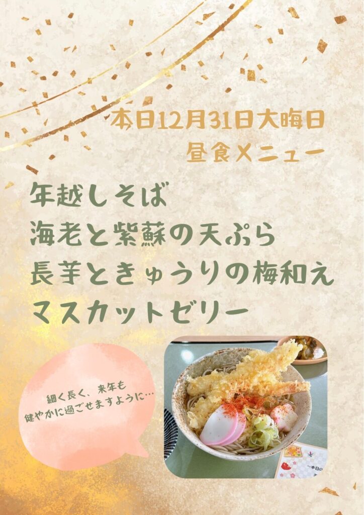 今日の昼食は年越しそばを