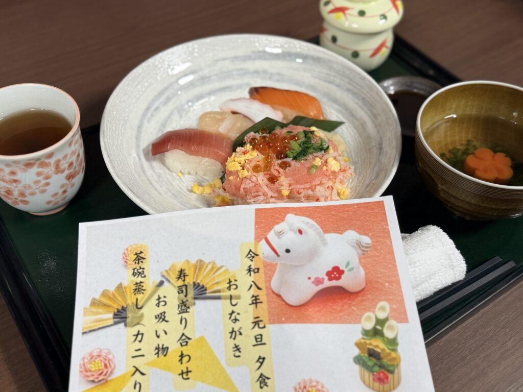 赤飯、すまし汁、メバルの柚子味噌焼き、