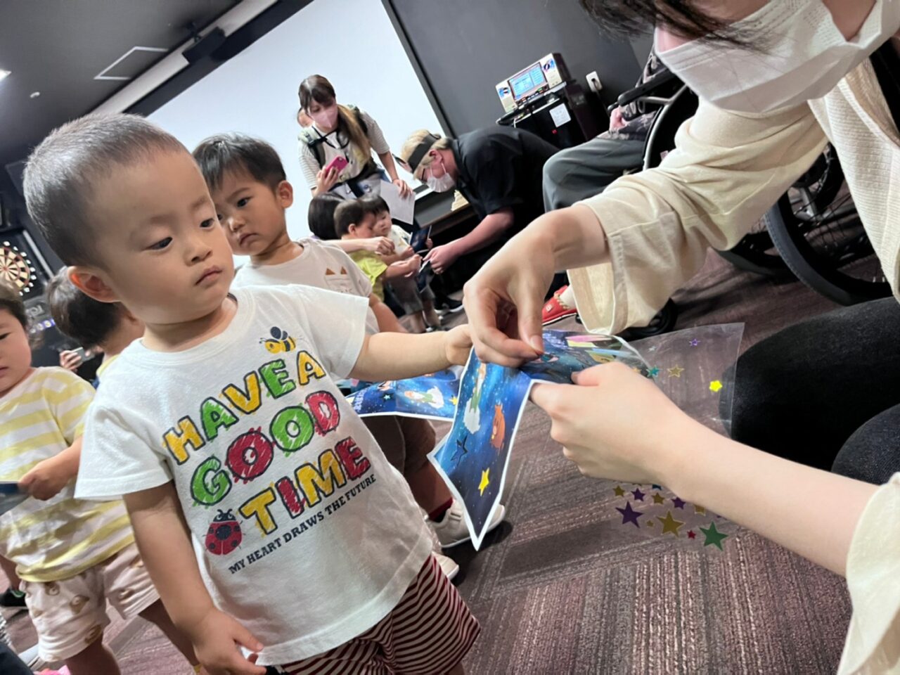 彦星、織姫、牛飼いを子供達が探し、見つけたらシールのご褒美✨