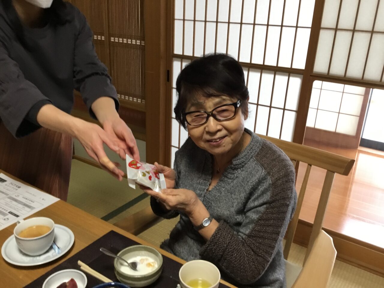 『あら〜ありがとう?』『榮太楼のお菓子美味しいのよねー』『どら焼き大好きなのよー❤️嬉しいわー?』『社長さんから?ありがとうございます☺️よろしくお伝えください』とみなさん嬉しそうでした☺️?どら焼きをもらって『今、開けて食べてもいいの?』と、どら焼き好きのIさん♪嬉しそうに完食されていらっしゃいました?