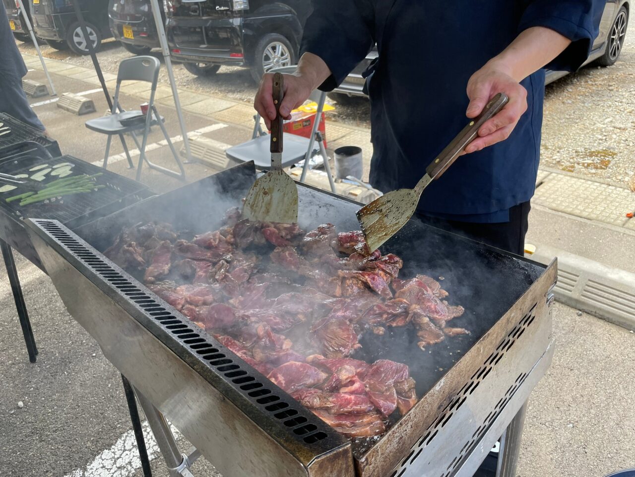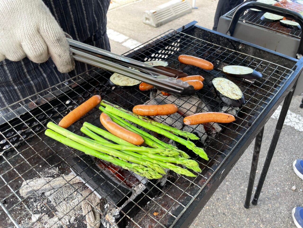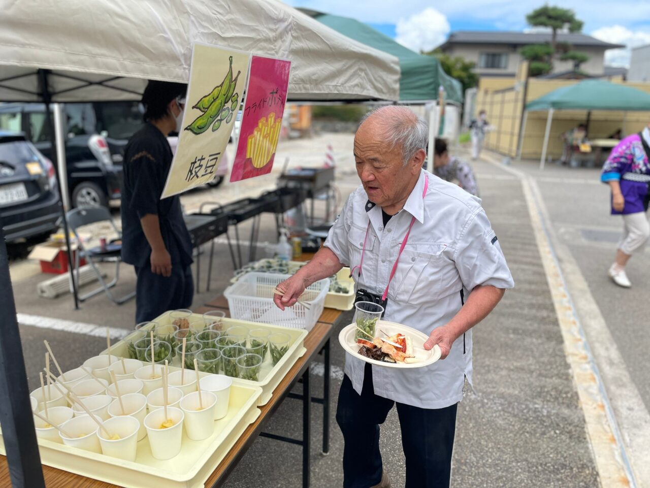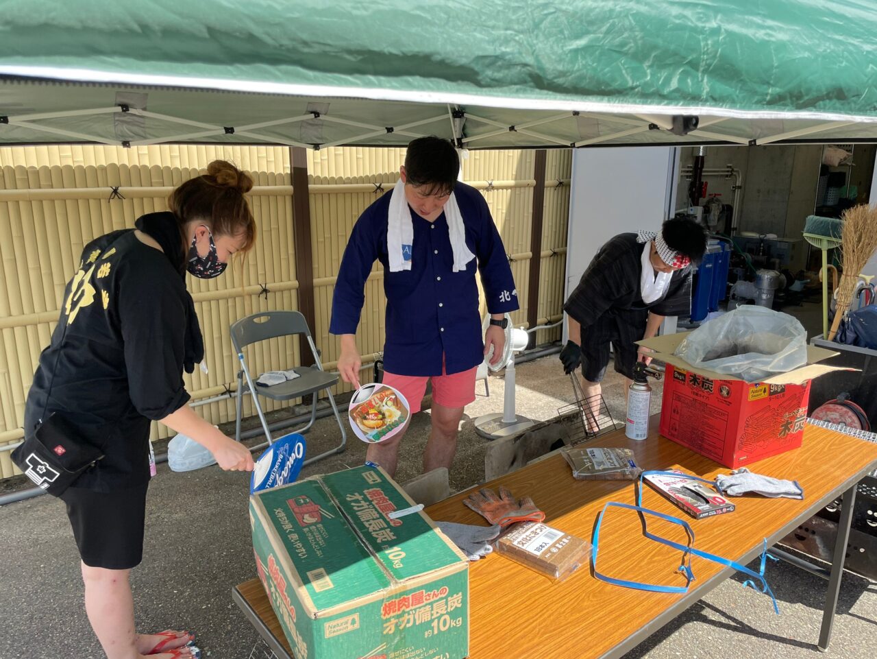 館内と屋外で職員を二手に分け、設営やお食事準備を手際良く行います。