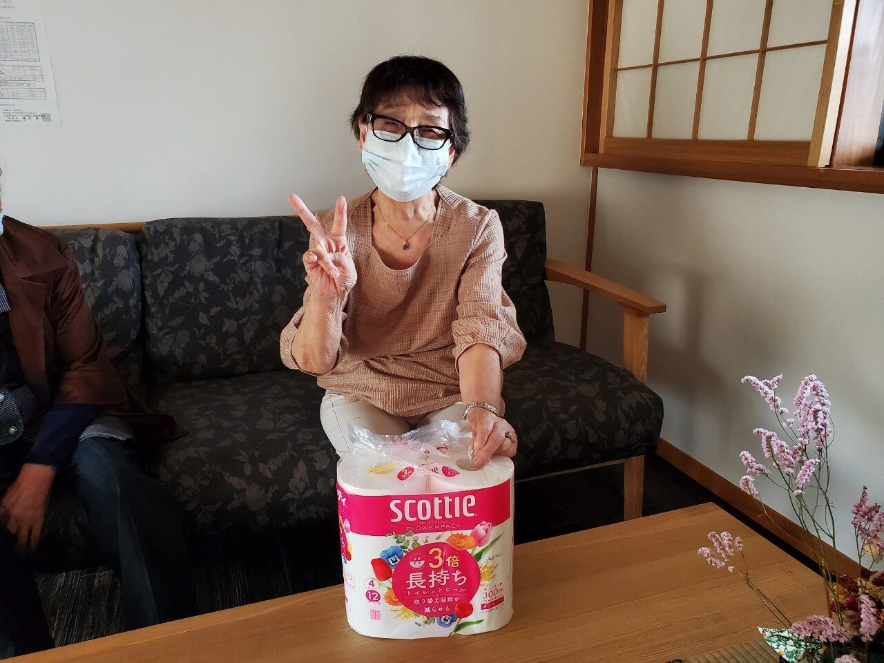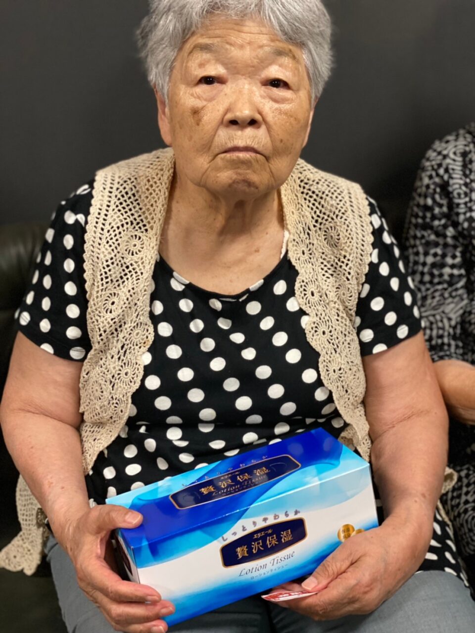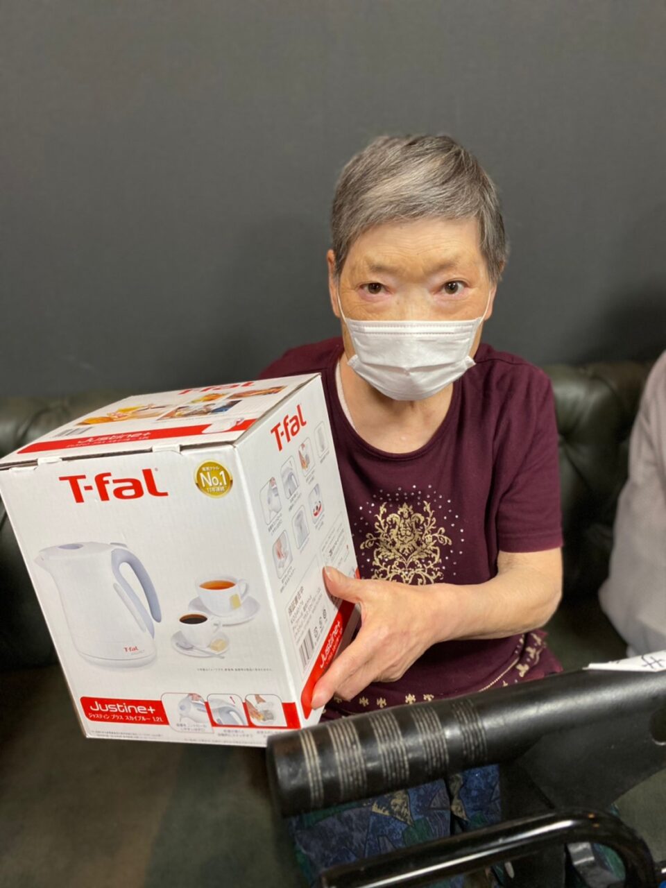 都合により、抽選会場に来られなかった当選者には、後ほど居室へお届けに参りました!