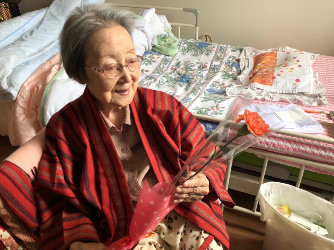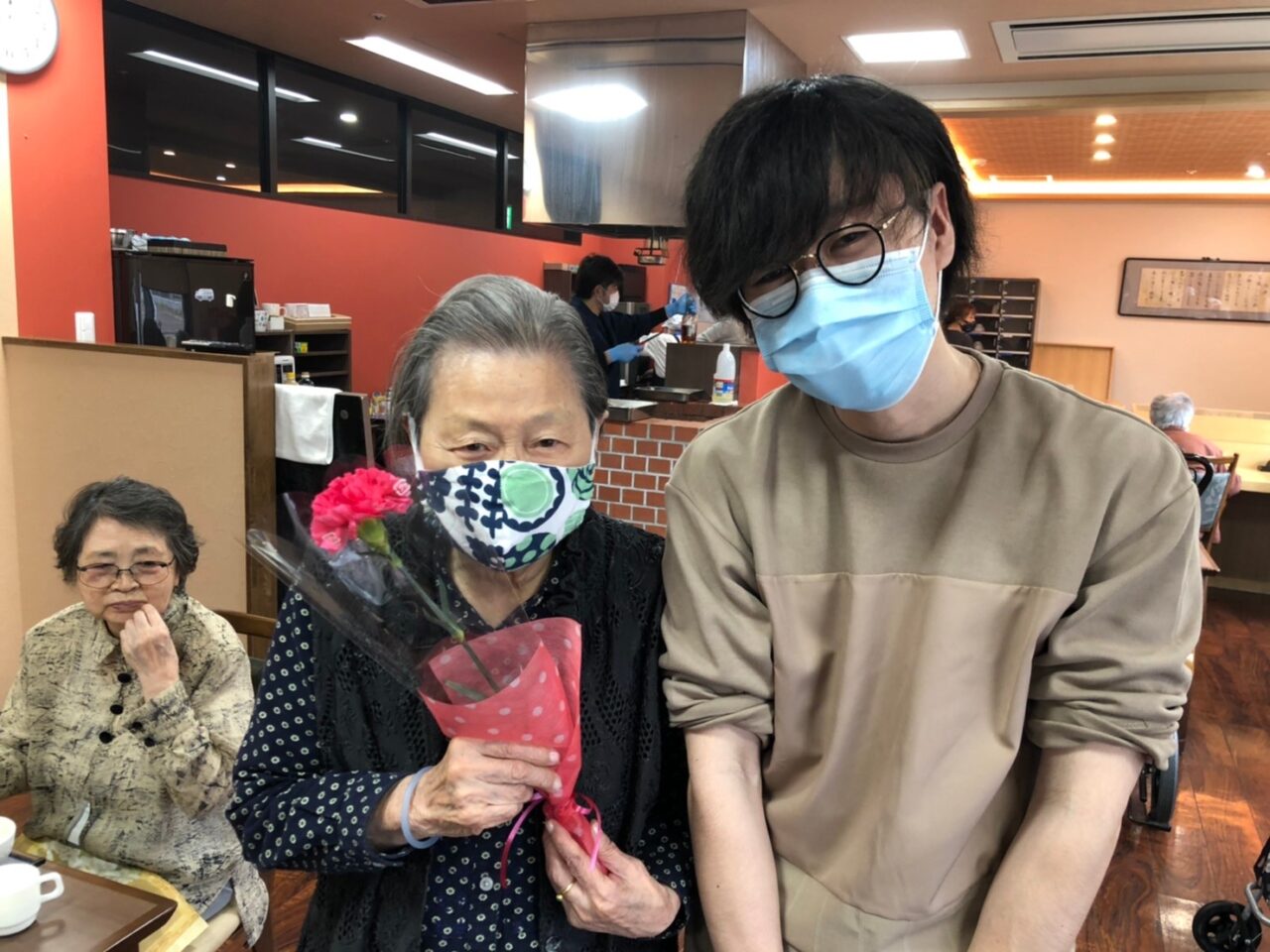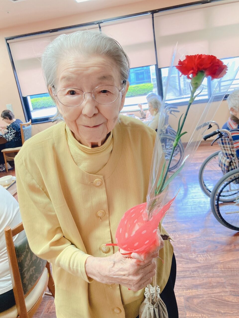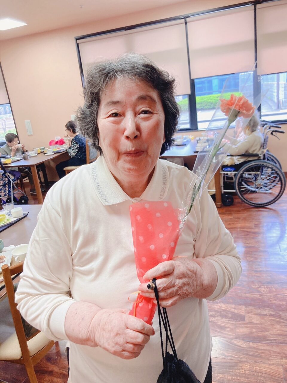 昼食後皆さんに職員からカーネーションのプレゼント?です