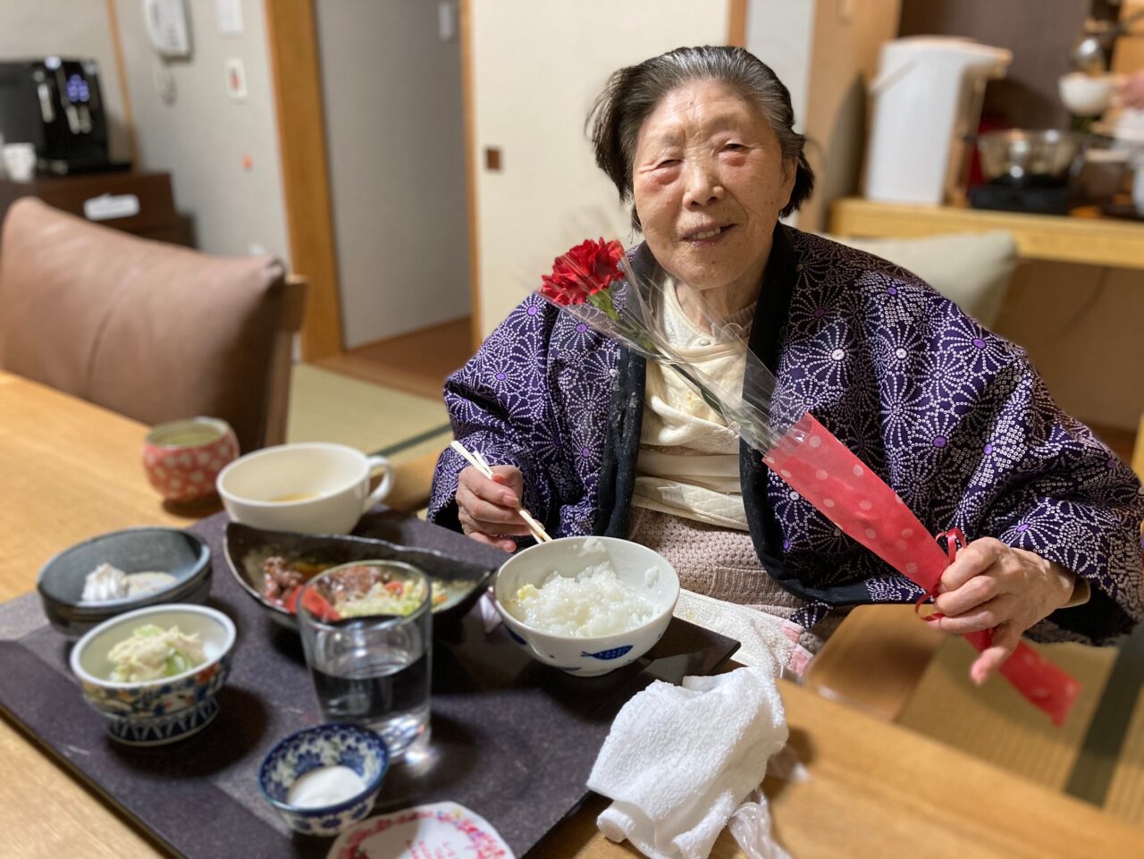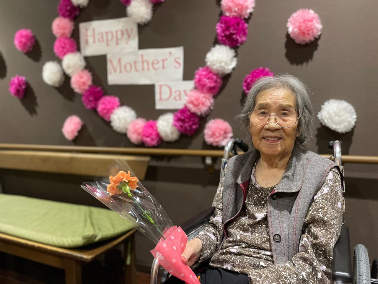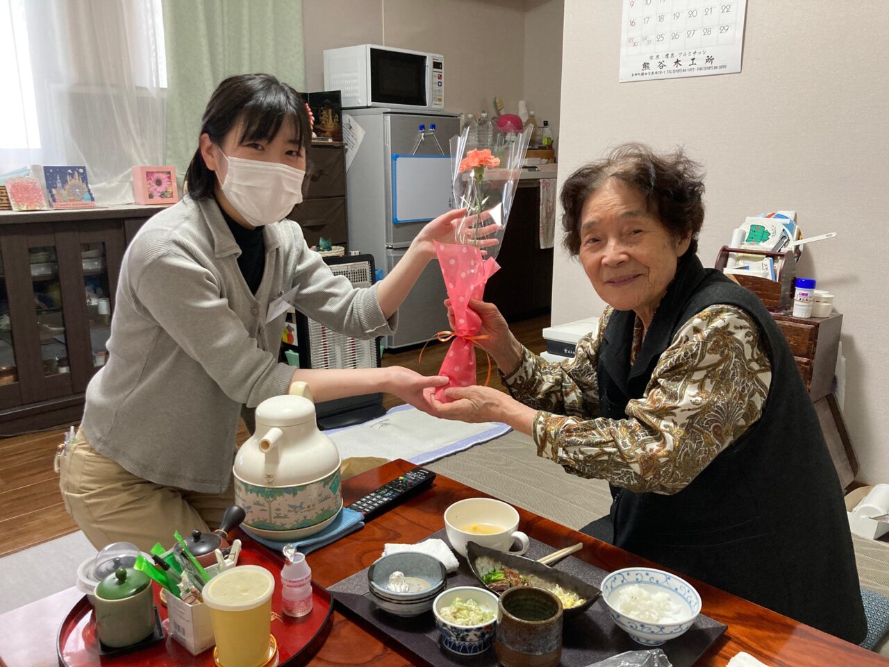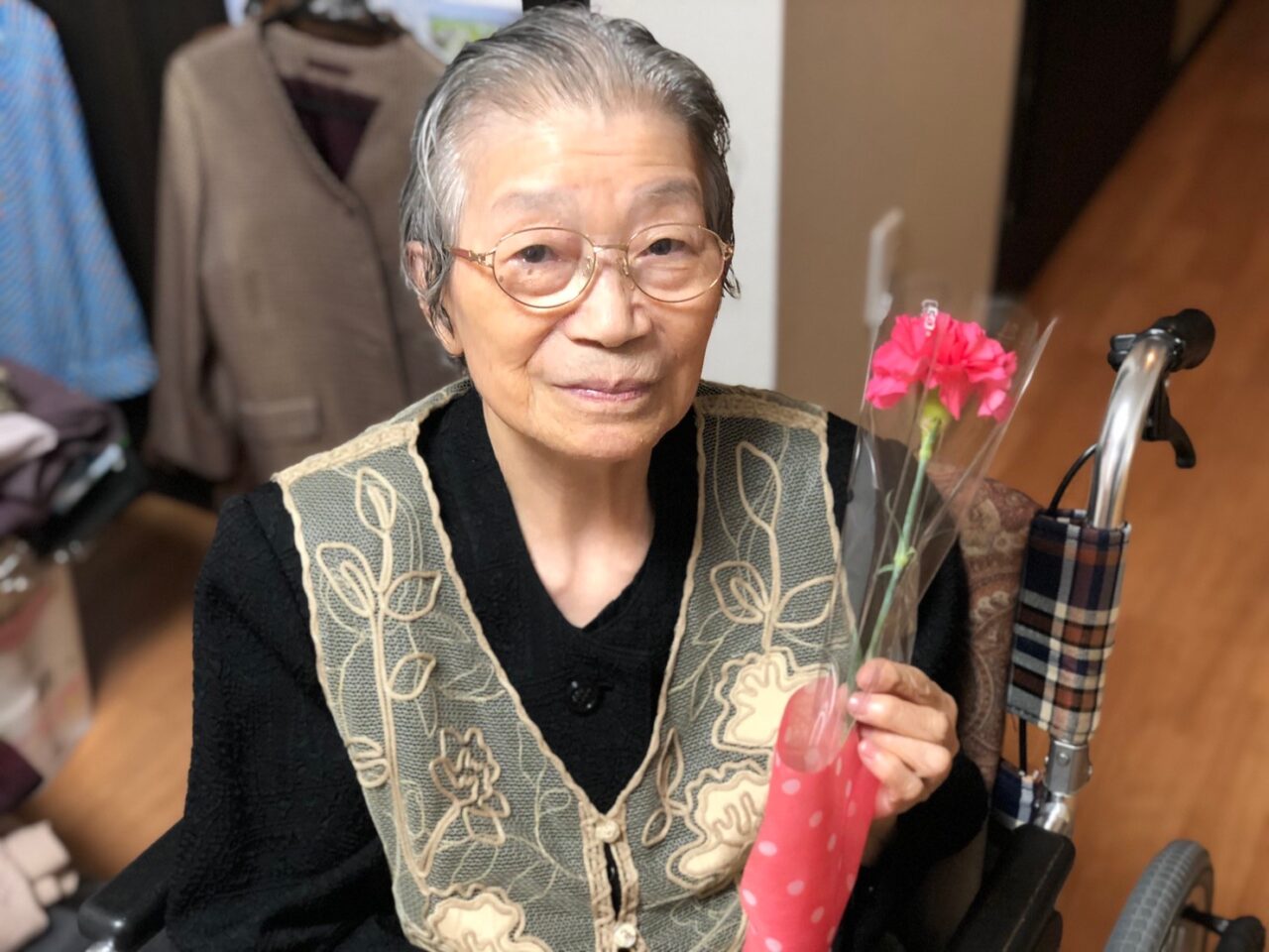 昼食後皆さんに職員からカーネーションのプレゼント?です