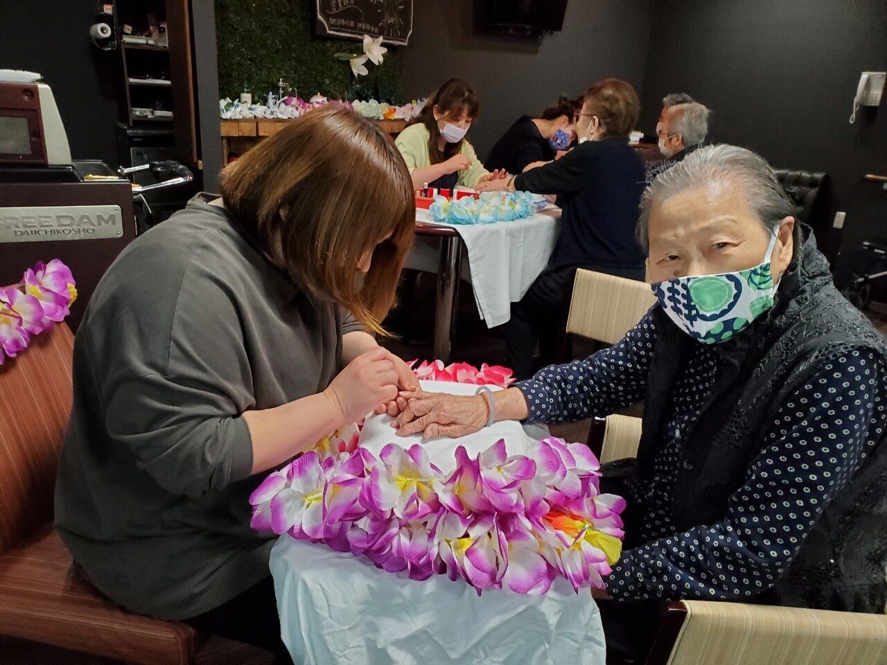 ネイルが終わると、、「どんな色にしたの?」「この色も良かったわね」と皆さんで見せ合いっこをしていましたよ?✨