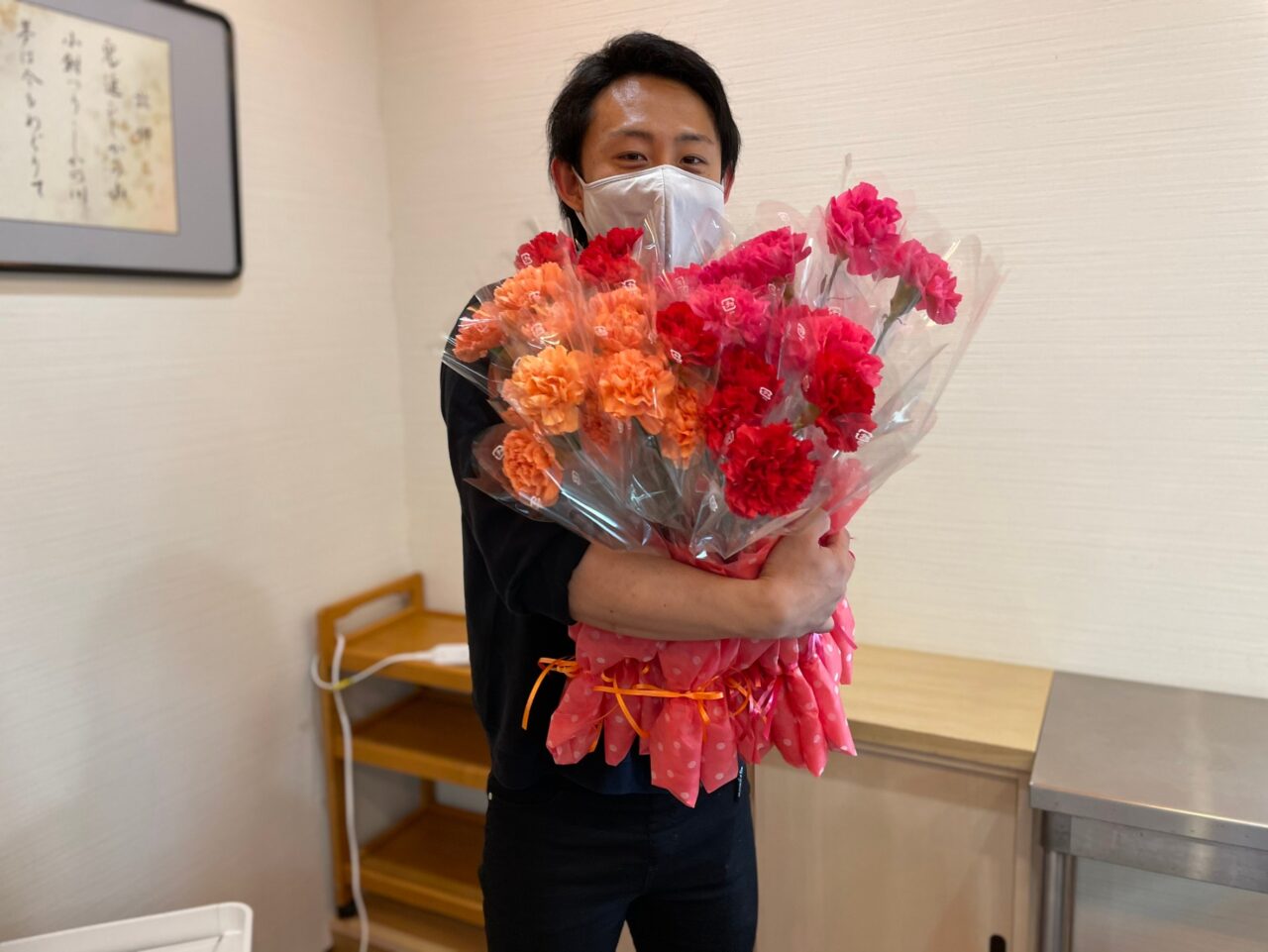 ご入店の際に可愛いお花を付けさせて頂くと、、、