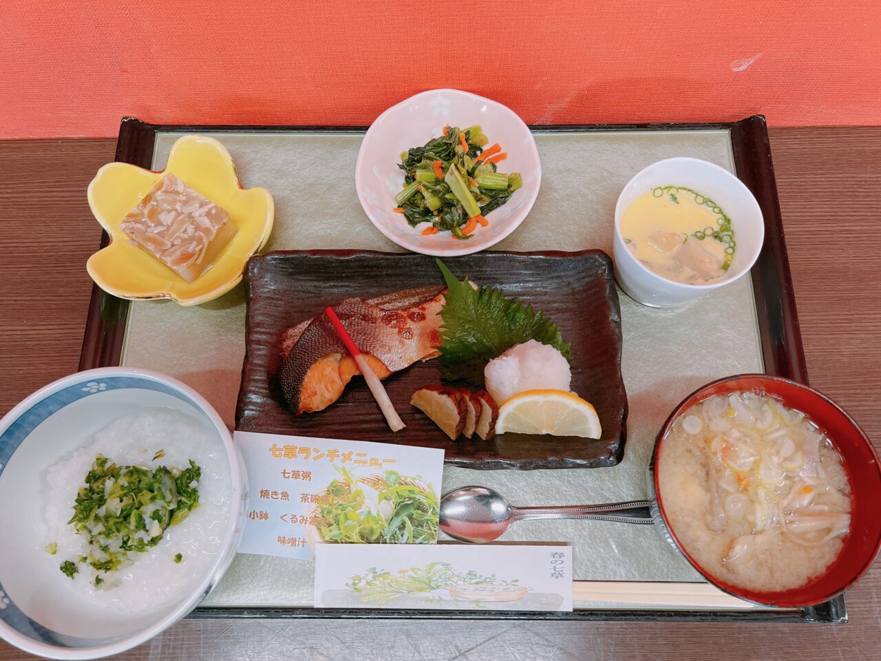 さて、1/7春の七草にちなんでさらさ大曲では七草ランチにしました?春の七草はせり、はこべら、なずな、ごぎょう、ほとけのざ、すずな、すずしろの7種類で無病息災、邪気を払い遠ざけるという祈りが込められているようです。又、お正月は栄養も偏りやすく、七草粥にはお正月で不足しがちなビタミンの補給、胃を休める効果があるそうです?✨