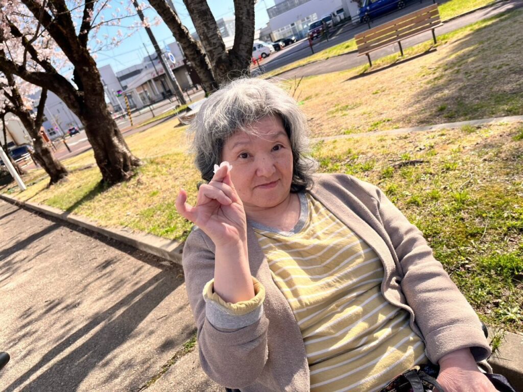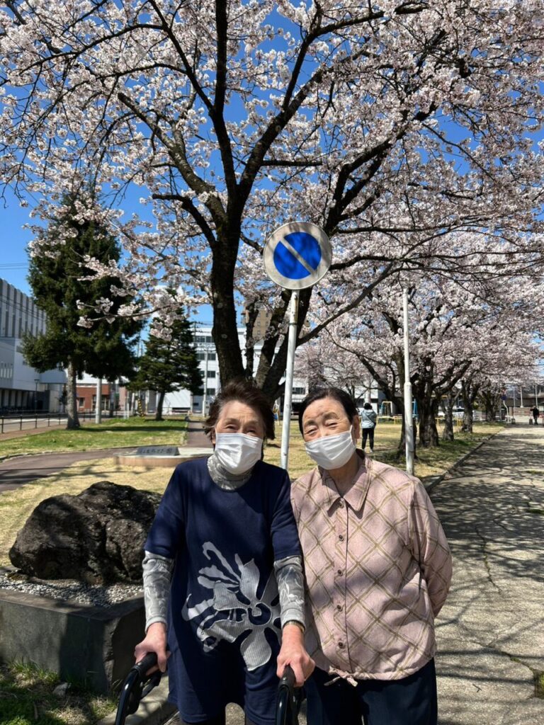 満開の桜を見てRさんもとっても笑顔です❗️