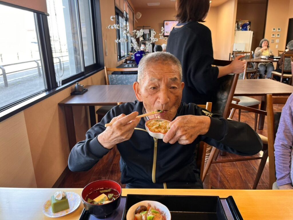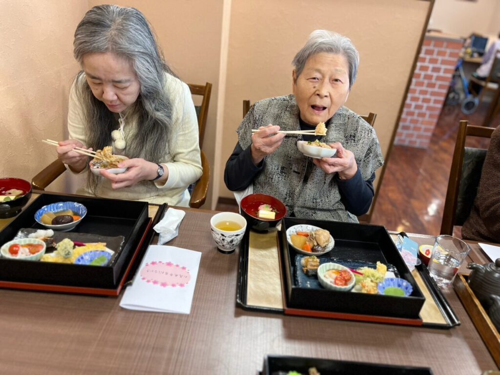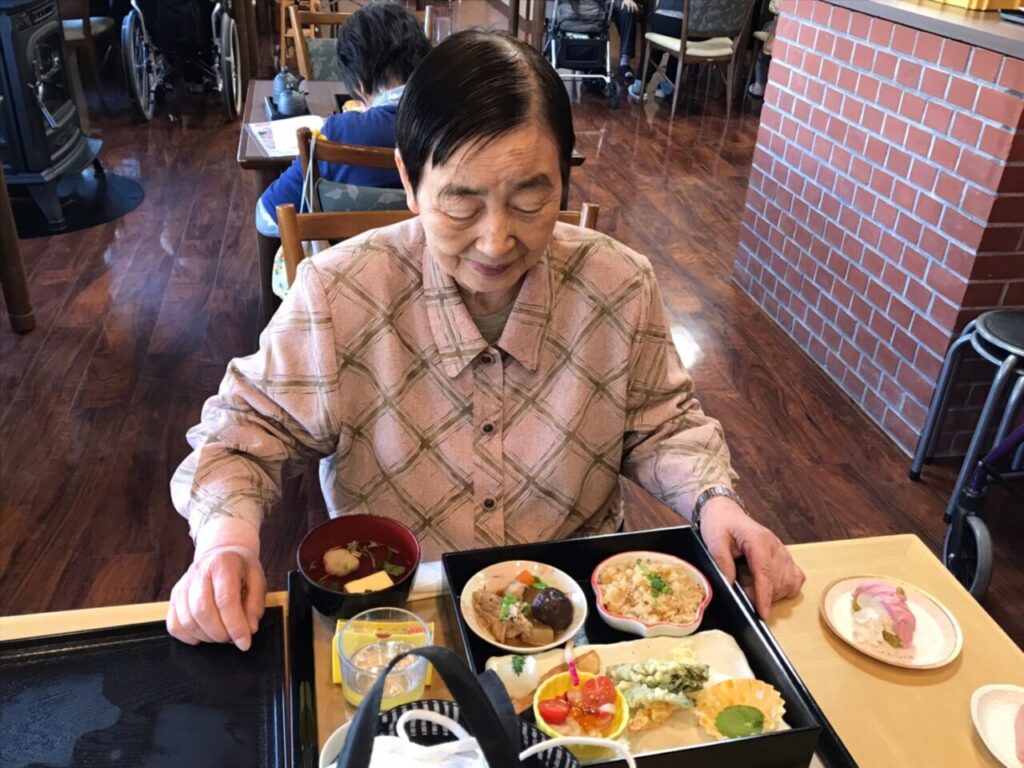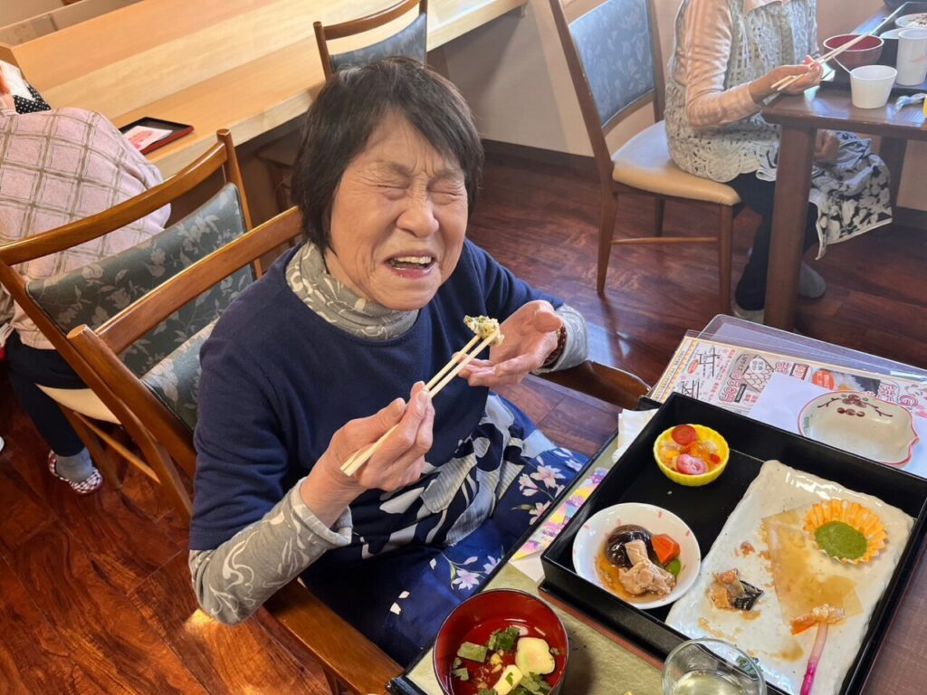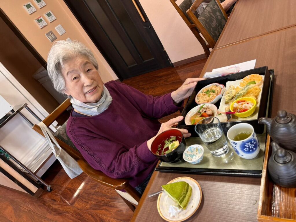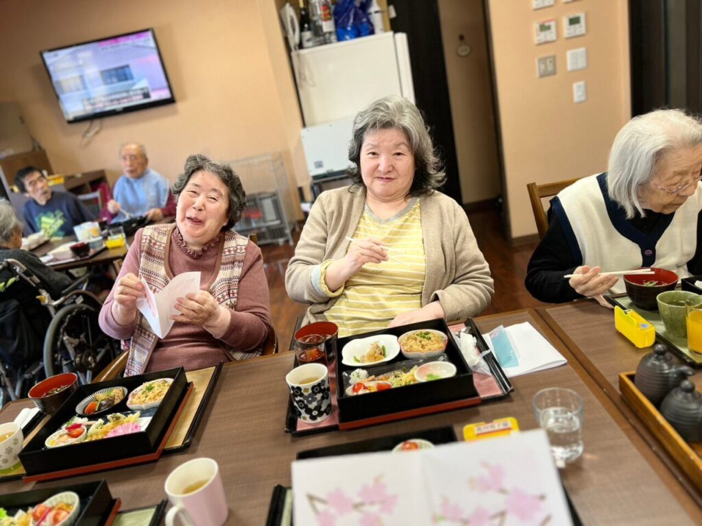 美味しいお弁当を召し上がって利用者さんもこの笑顔?