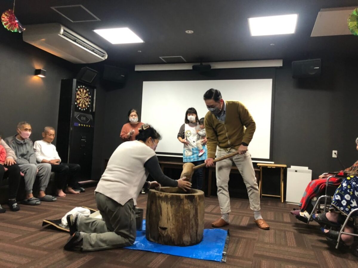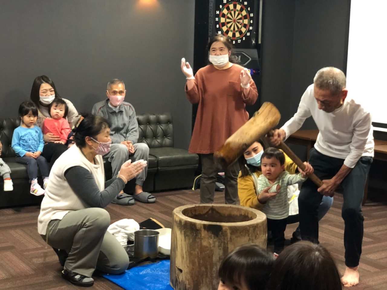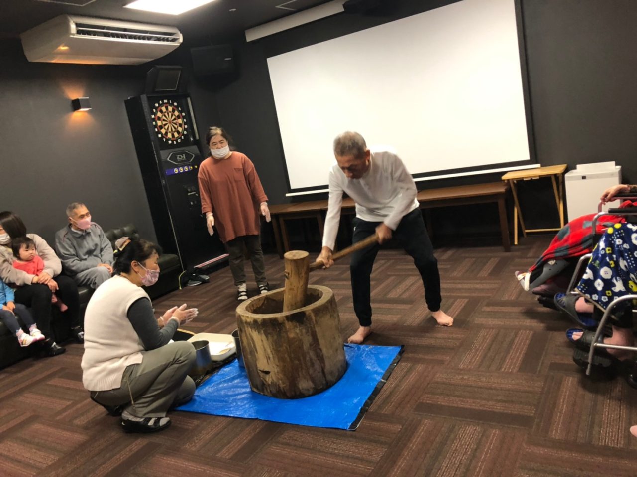 保育園の先生やYさんと一緒に、園児達も力強く餅つきをしてくれました?
