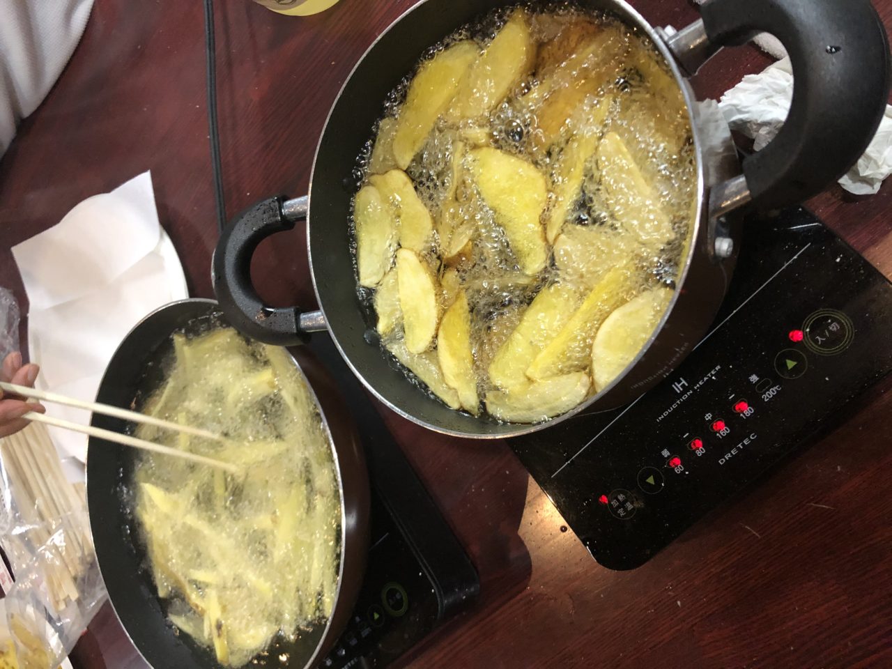 オープン前に自宅で取れた新ジャガを揚げてフライドポテト?にしました