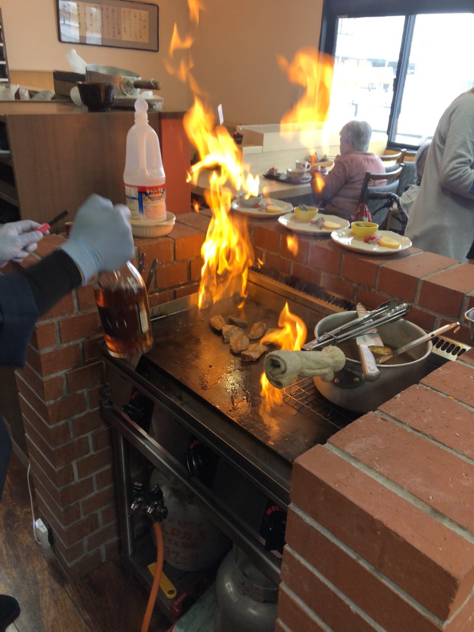 鉄板で焼いているところをみて頂き、ジューシーなステーキを召し上がっていただきました。