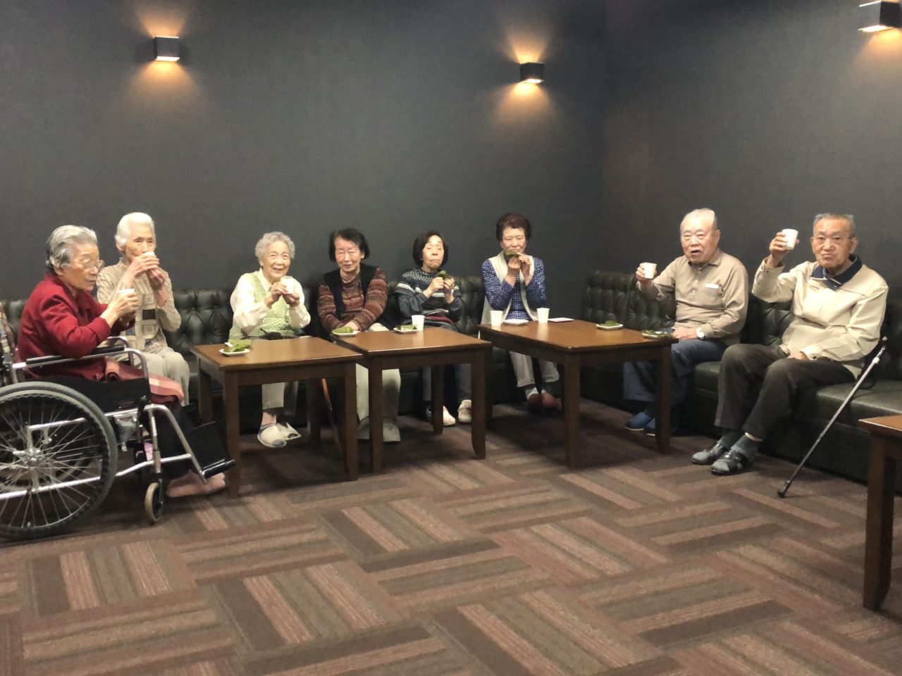 午後には口ずさむ歌の会を開き、その後、ラウンジにて柏餅とお茶も提供させていただきました!
