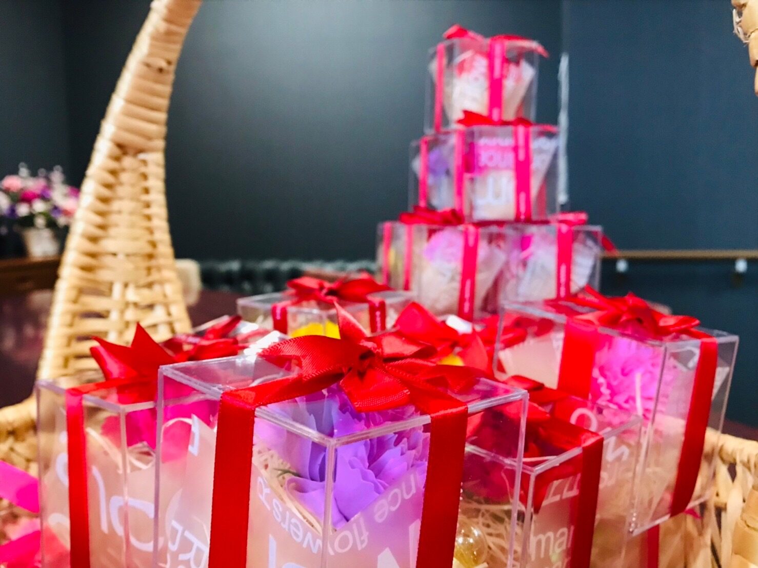 食事の途中では、ささやかではありますが、パートナー手作りの心を込めたプレゼントを1人ひとりに手渡しさせていただきました?
