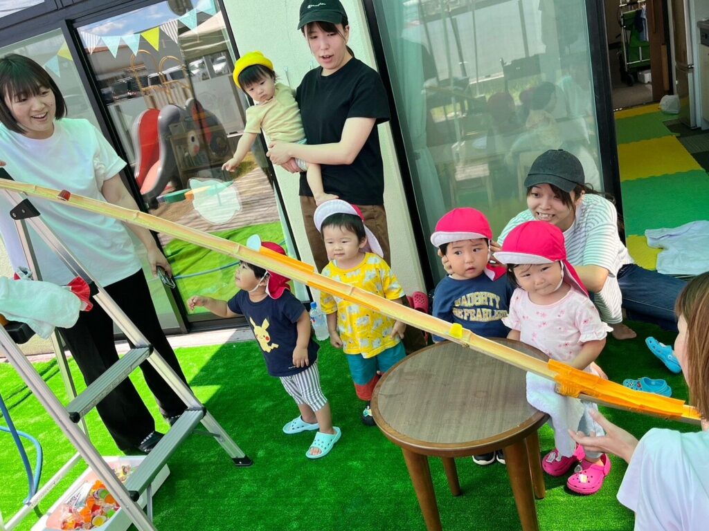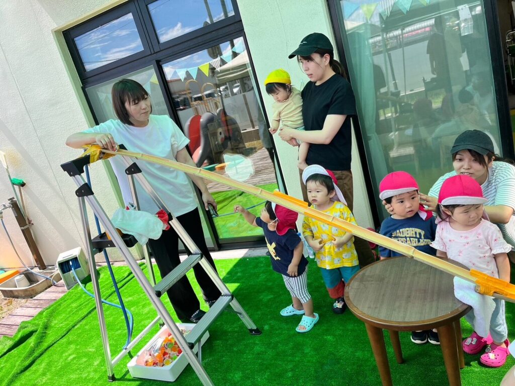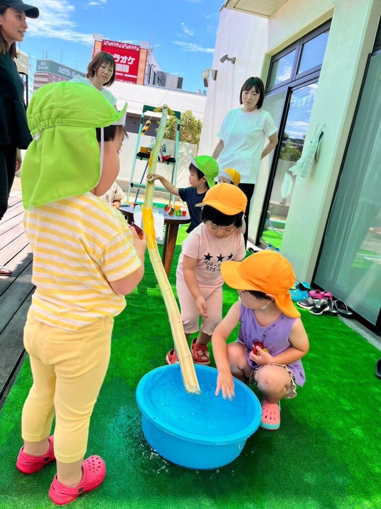 竹を使っためんこちゃんゼリー流しに夢中になるキッズ達❗️??