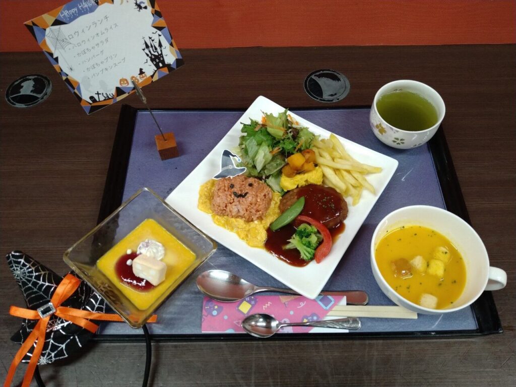 「かぼちゃのオムライス?可愛くて食べるのが勿体無いね?」「かぼちゃの帽子可愛いね❤️」と仰ってくださりました?「おいしいね?」と、みなさんペロリと完食でした?