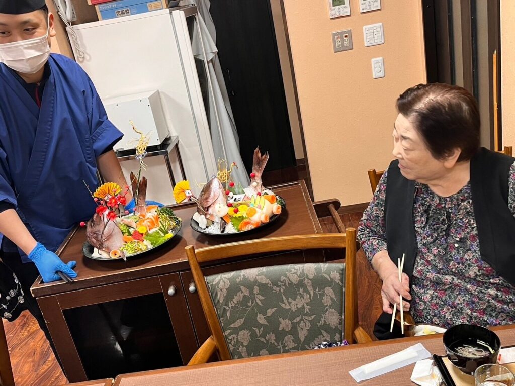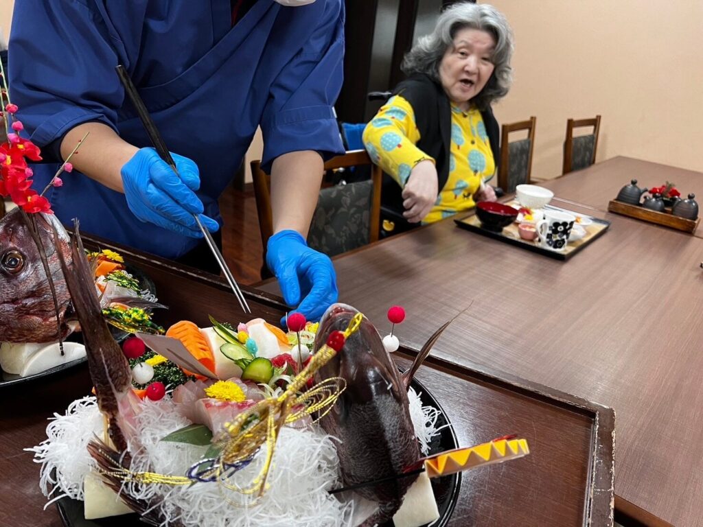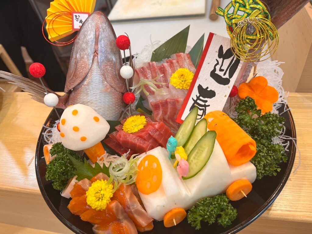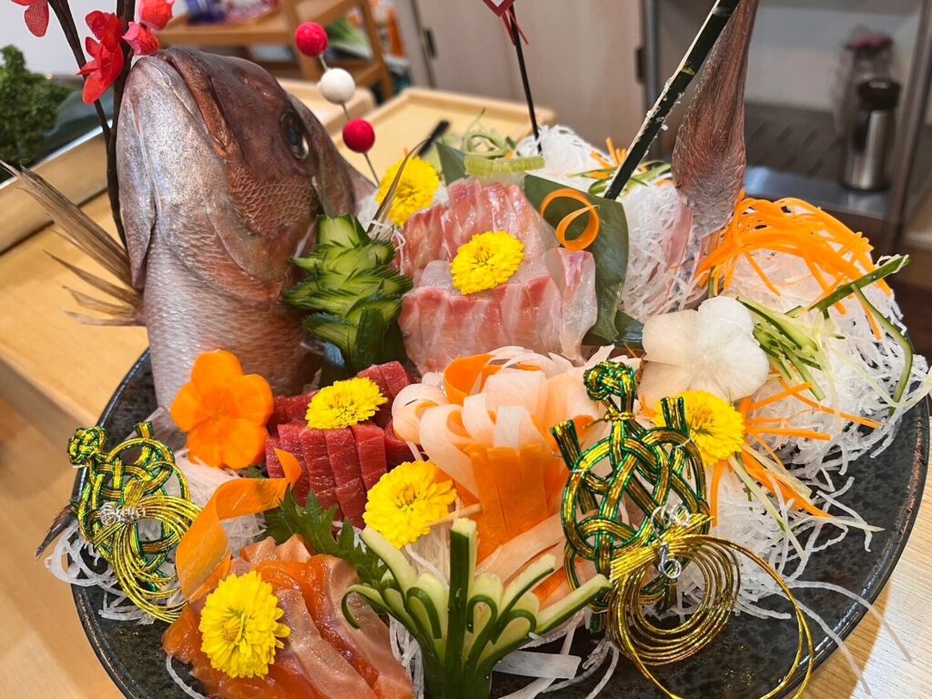 一富士さん渾身の飾り切りが立派な鯛のお造りを更に鮮やかにしてくれました✨