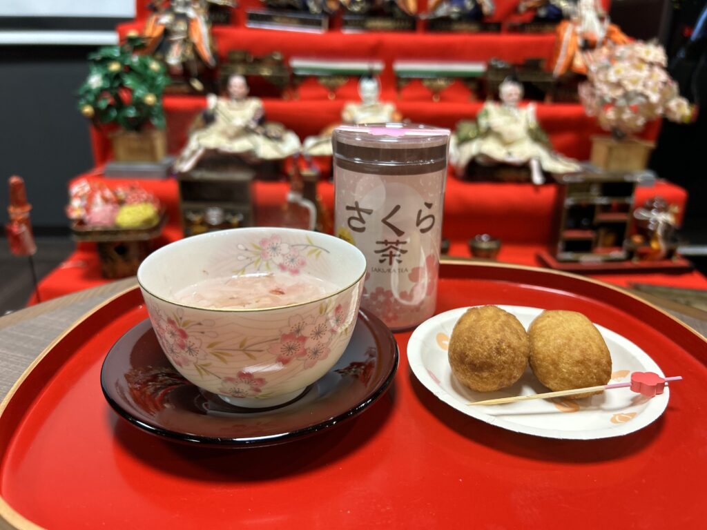 さくら茶のほんのり塩味と、甘い桜あんドーナツがとてもマッチしていて皆さん喜んでくださっていました。
