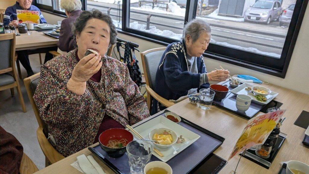 「いっぺ種類あって選べねな」「これもうめそだ〜」とおっしゃり好きなものを召し上がっていらっしゃいました。