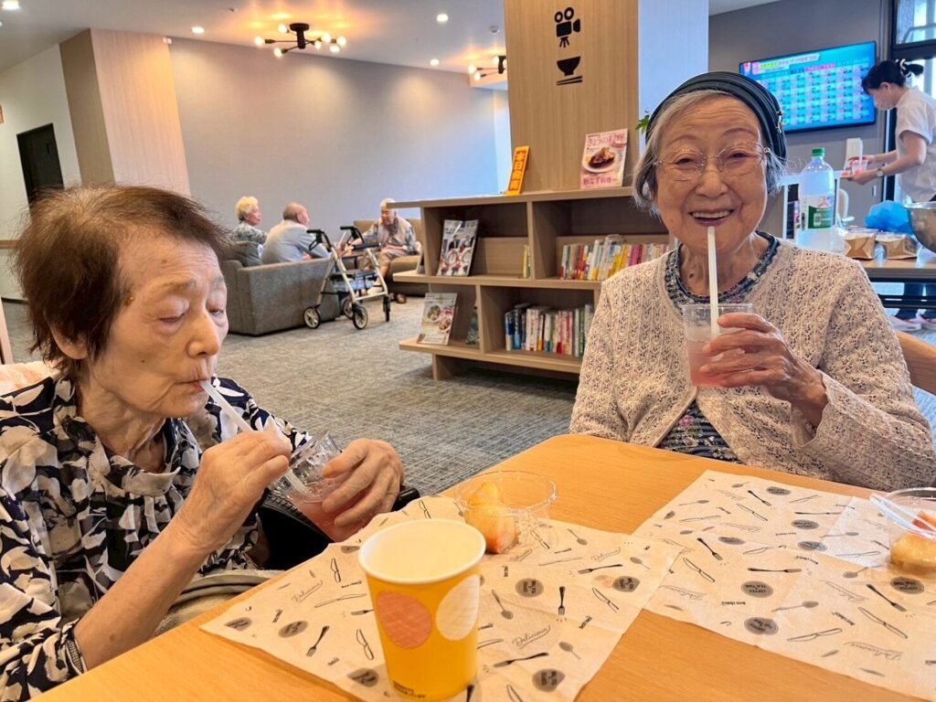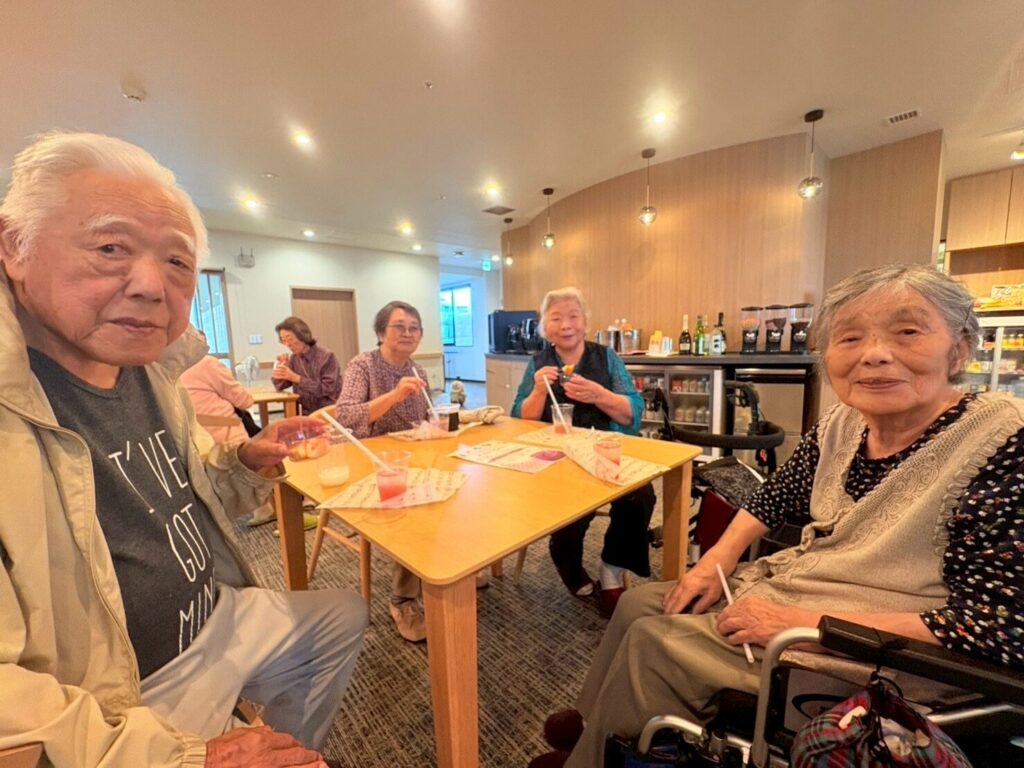 ロビーで、北限の桃と一緒に冷たい飲み物も提供させて頂きました🍹