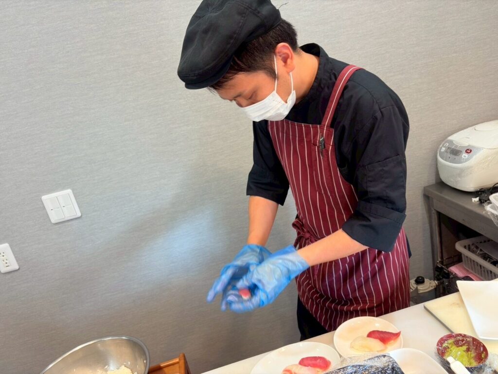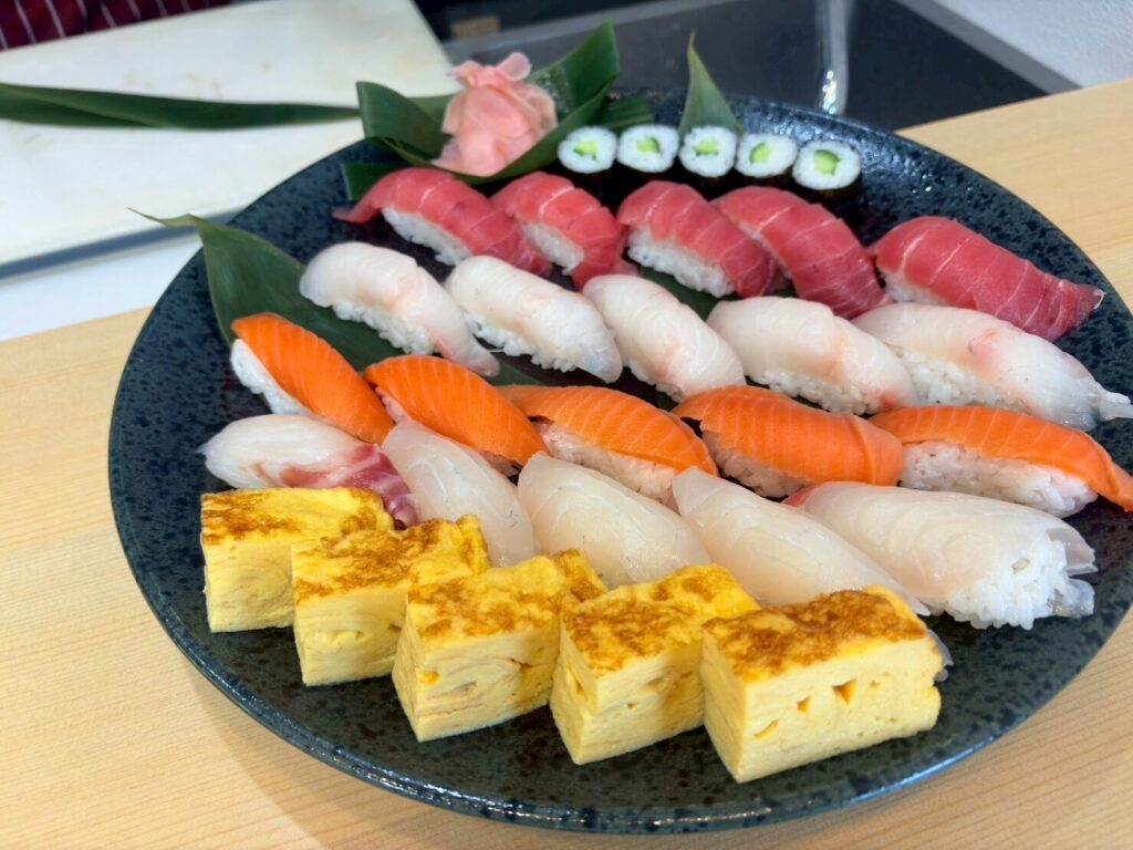 握りたてのお寿司🍣と2種類のケーキ🍰をご用意させて頂きました。
