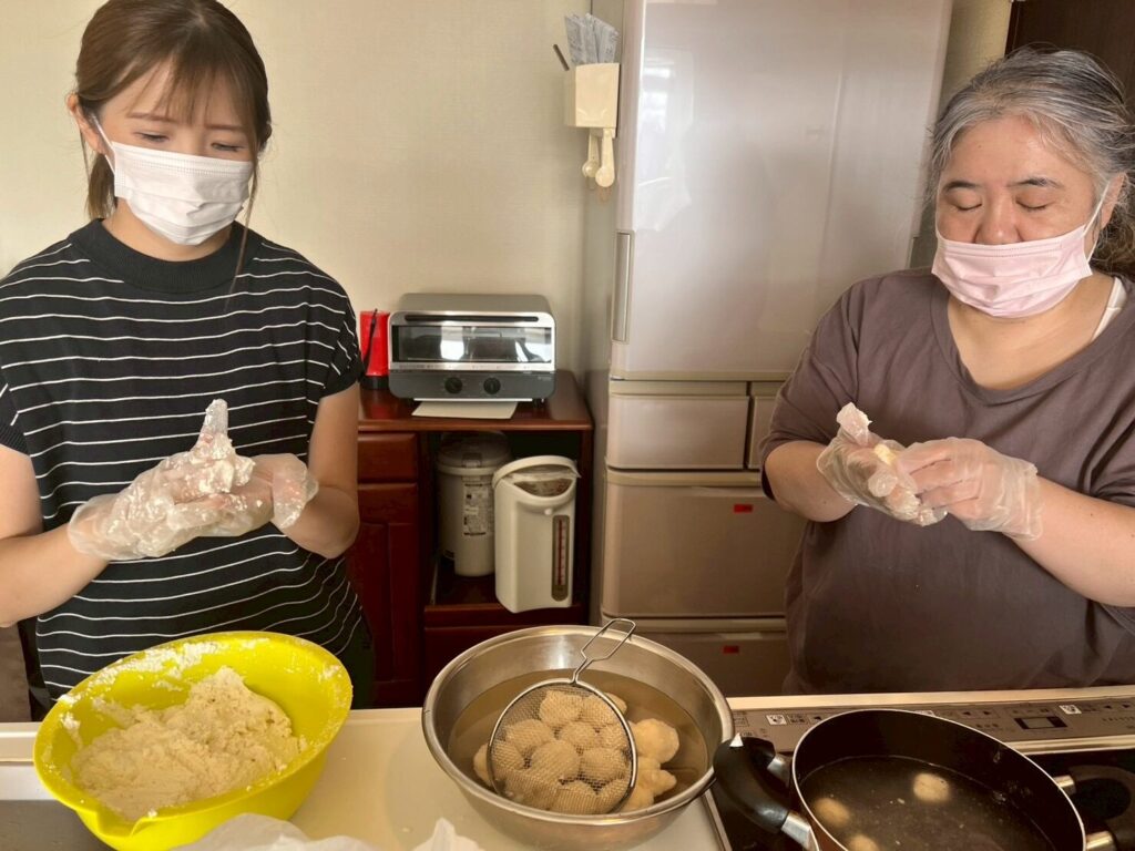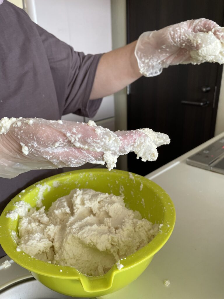 利用者さんが食べやすいように豆腐と白玉粉を混ぜ合わせました✨
