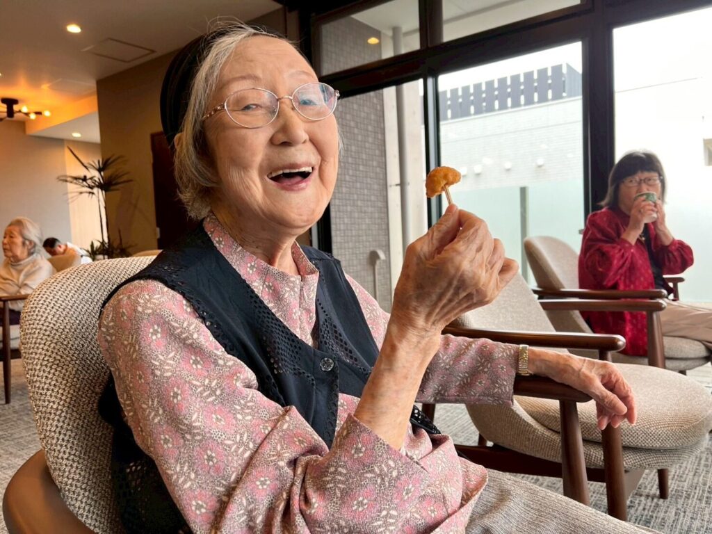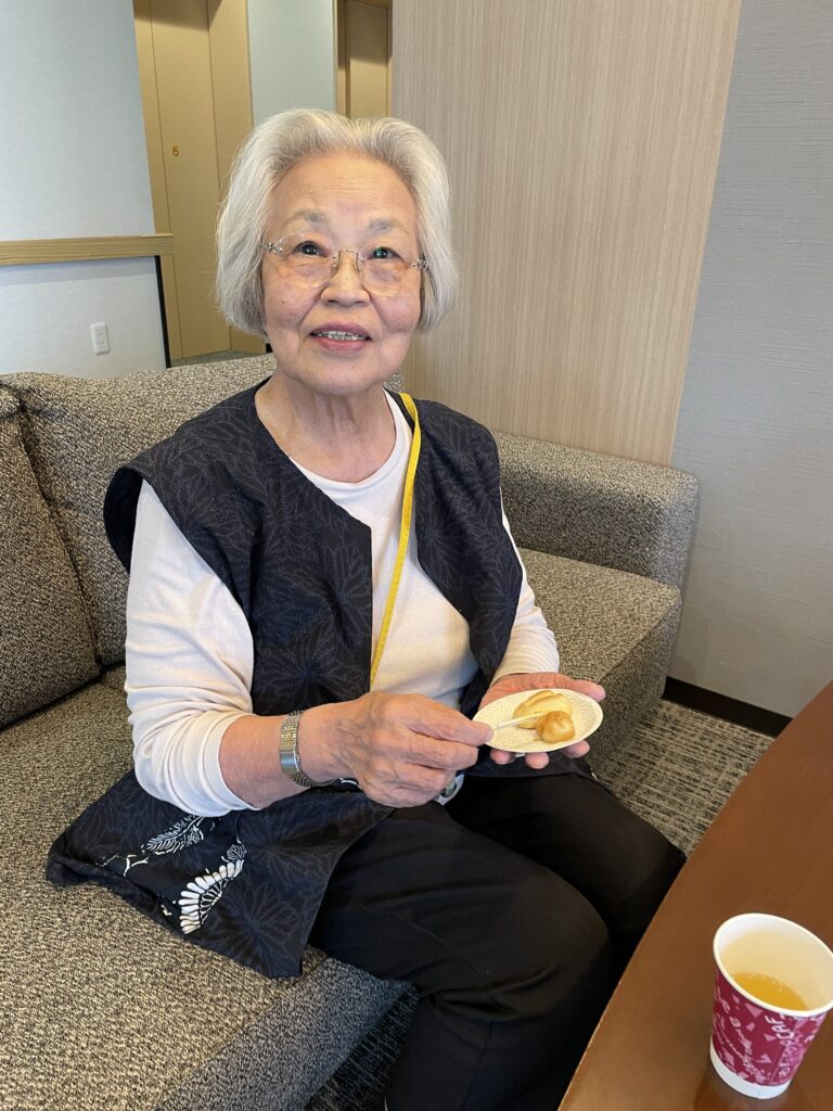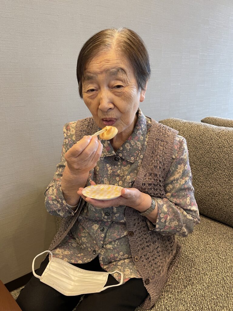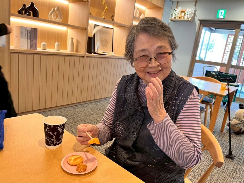「可愛いお菓子だこと🐇」「団子手作りしたの?すごく柔らかくて美味しい😋」と喜んでくれました👏