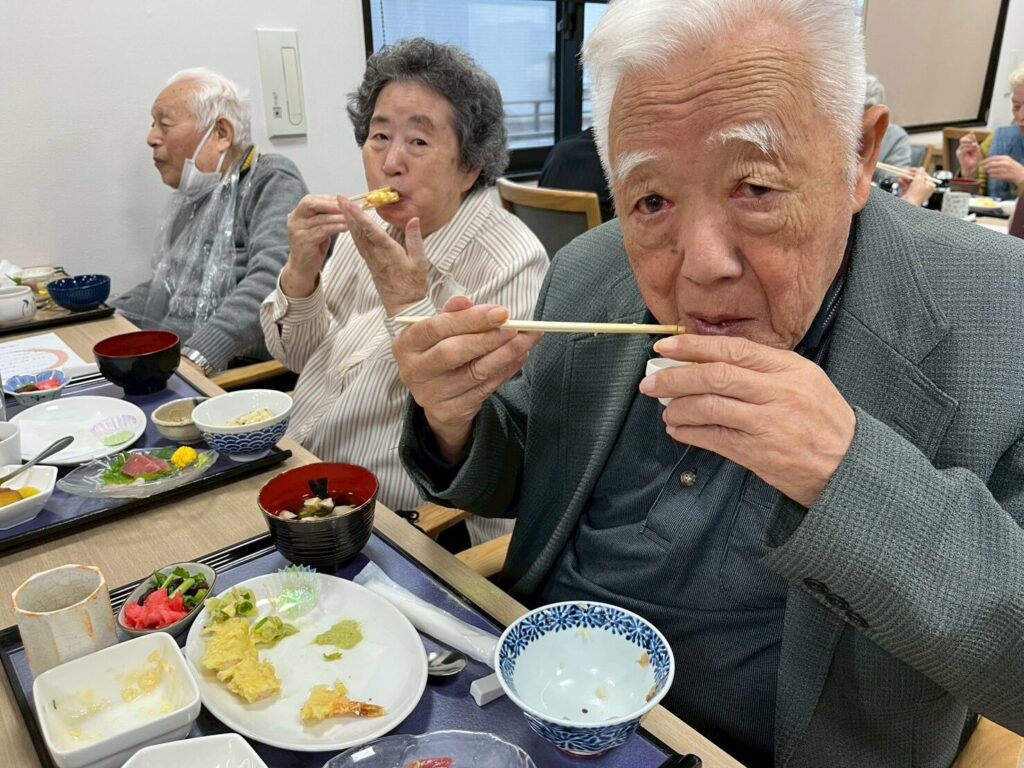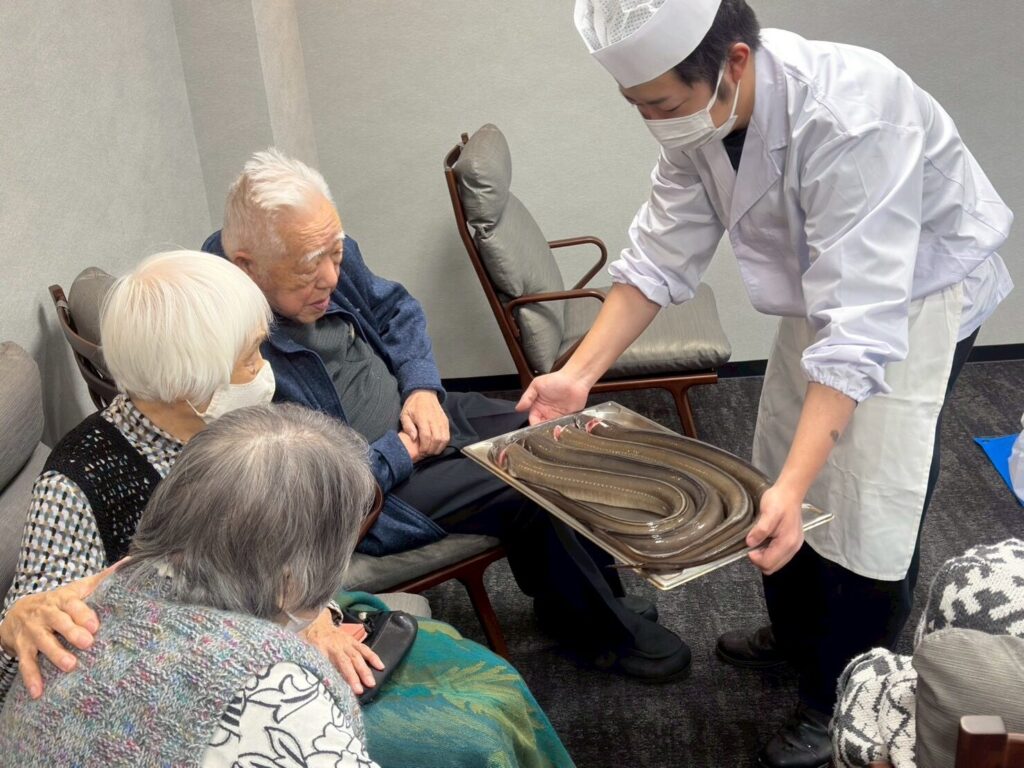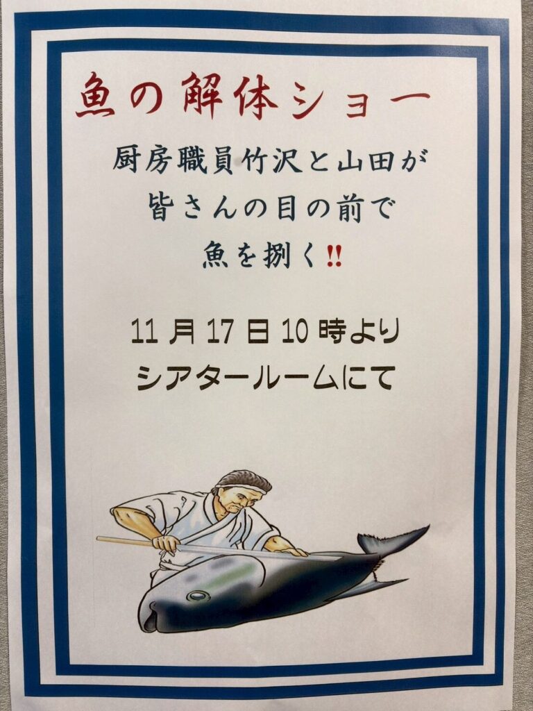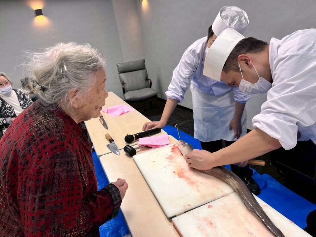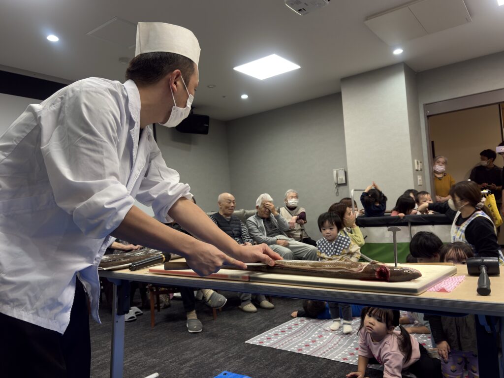 利用者の皆さんの真近で捌いているところを見ていただきました