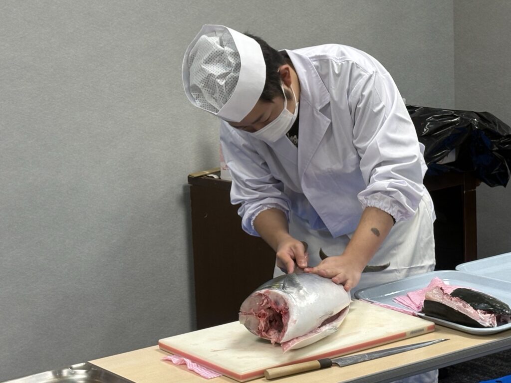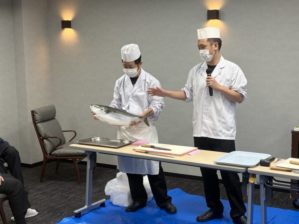 まずはハマチを竹沢シェフの解説付きで山田シェフに捌いていただきました🐟