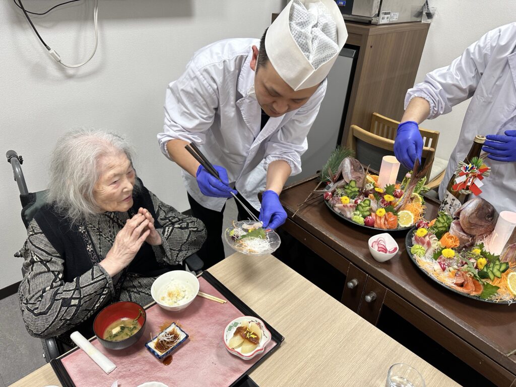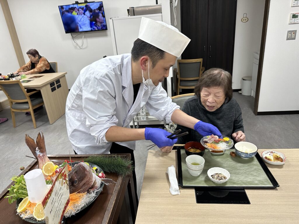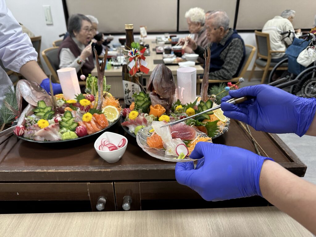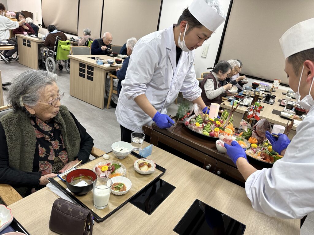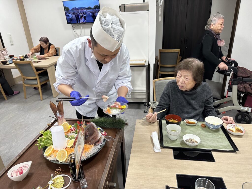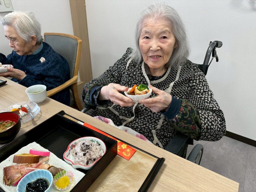 「毎年こんな豪華なお節料理でて、びっくりしちゃうね」「今日は朝から楽しみにしてたの!」と皆さんに喜んでいただけました😃