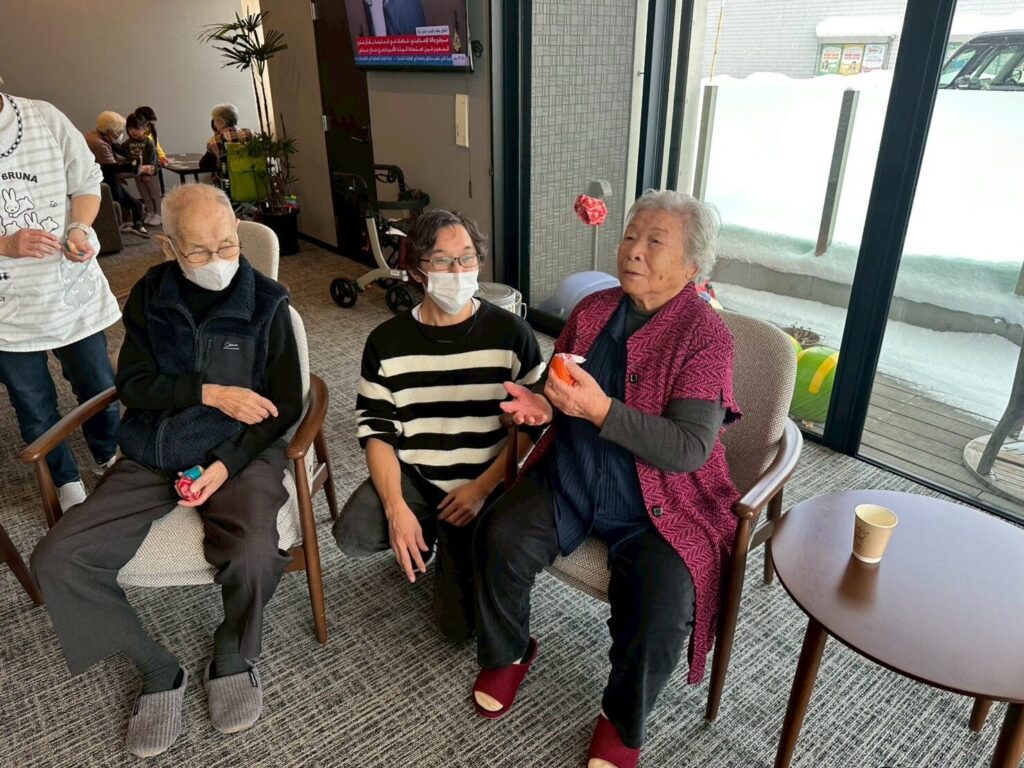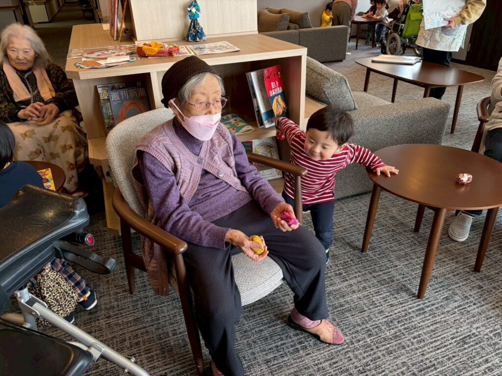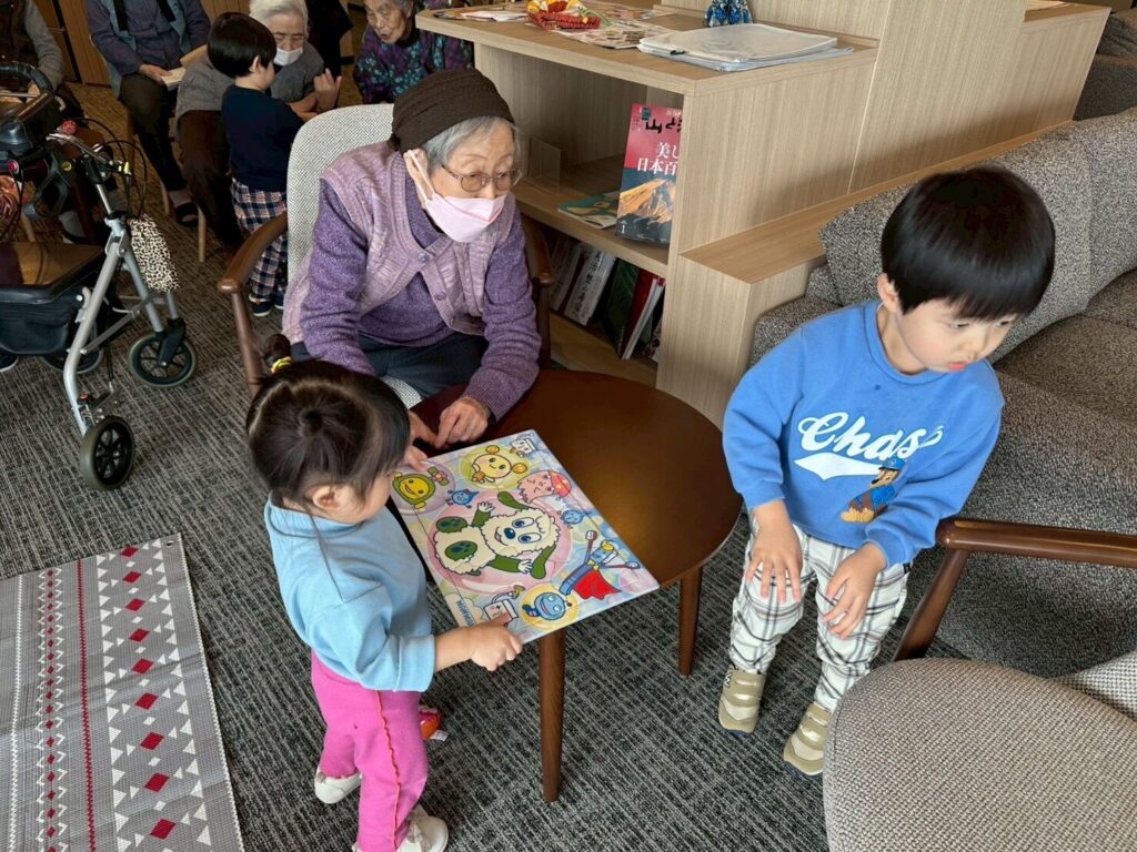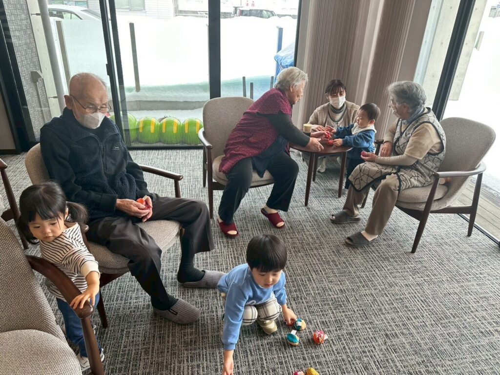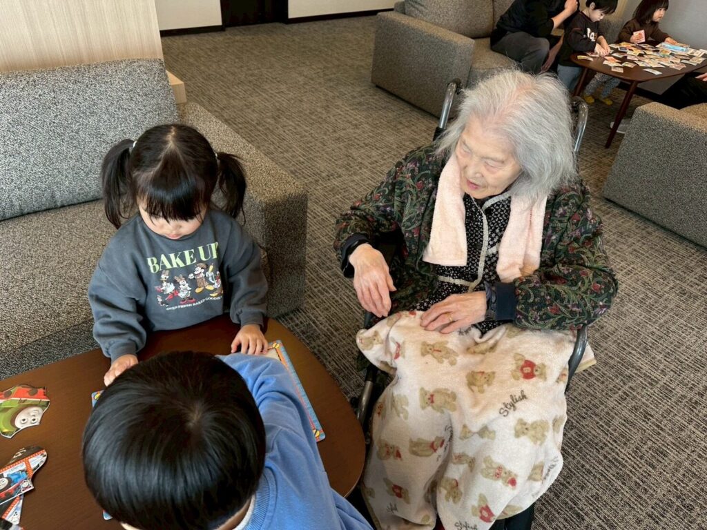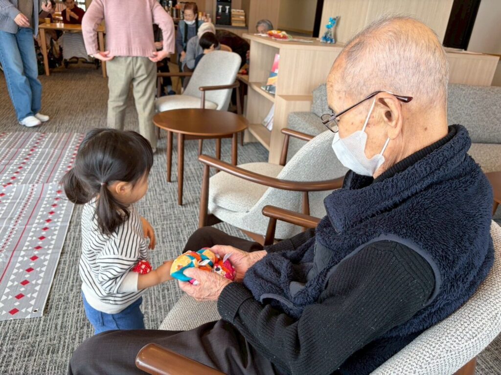 利用者さんがお手玉をする姿に、子供達は興味津々で目を輝かせていましたよ✨