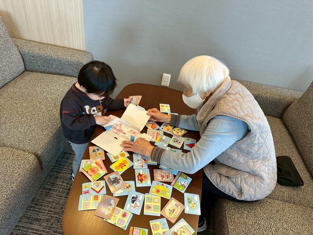 パズルや絵合わせカードを遊んでいる子供達をニコニコしながら見ている姿に、こちらもほっこりしました☺️