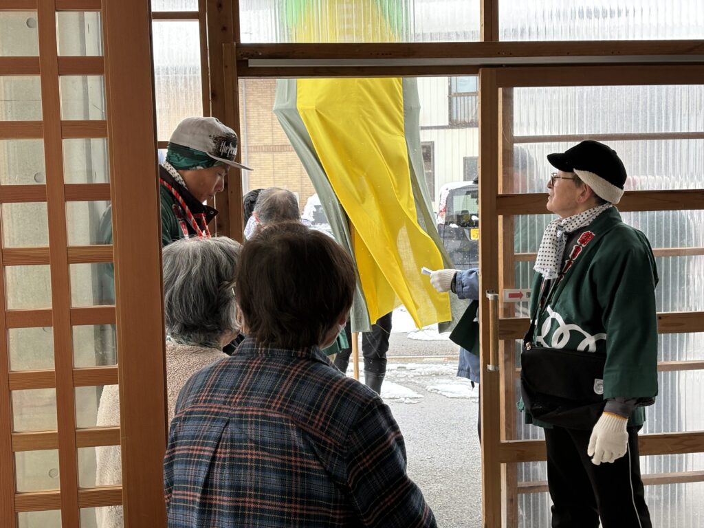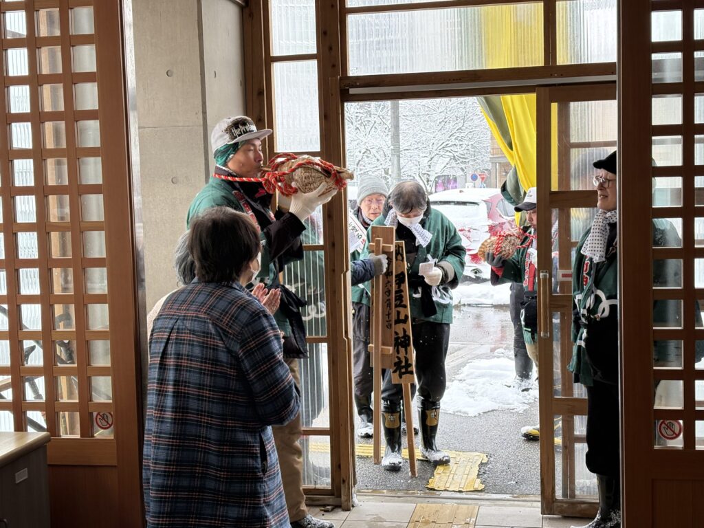 本日、先月の昭和六十年会の梵天に続き、朝日町内会の梵田がさらさにいらしゃいました‼️