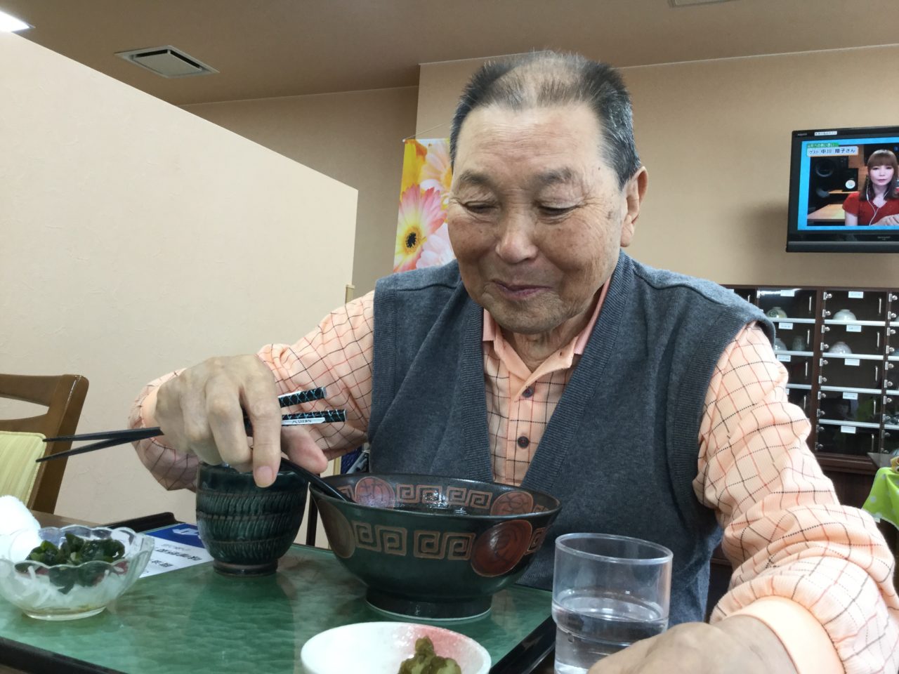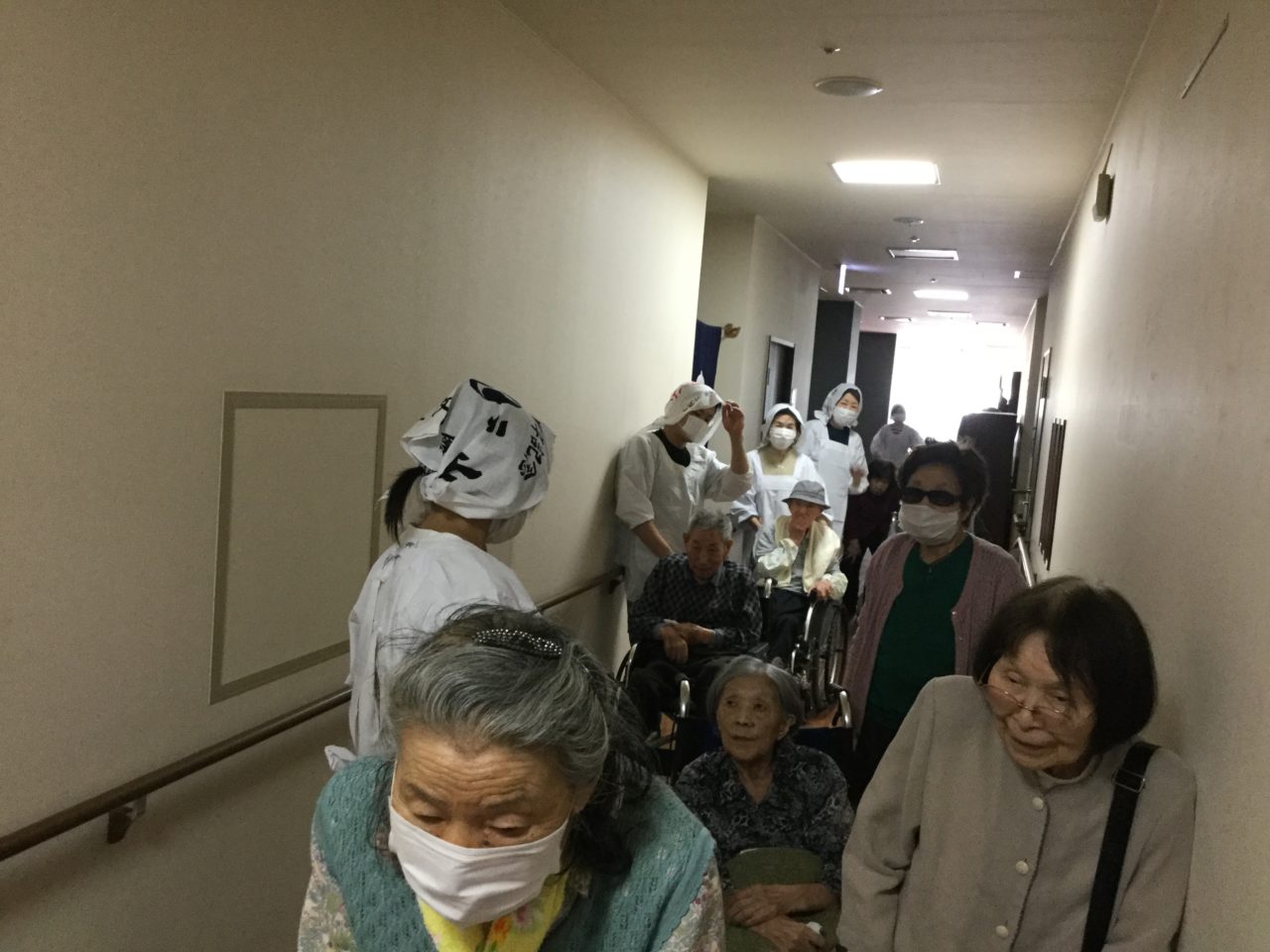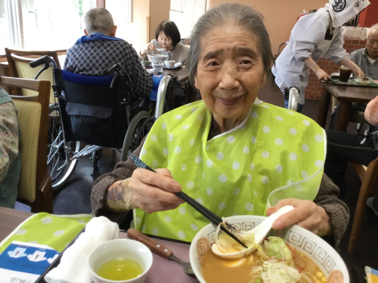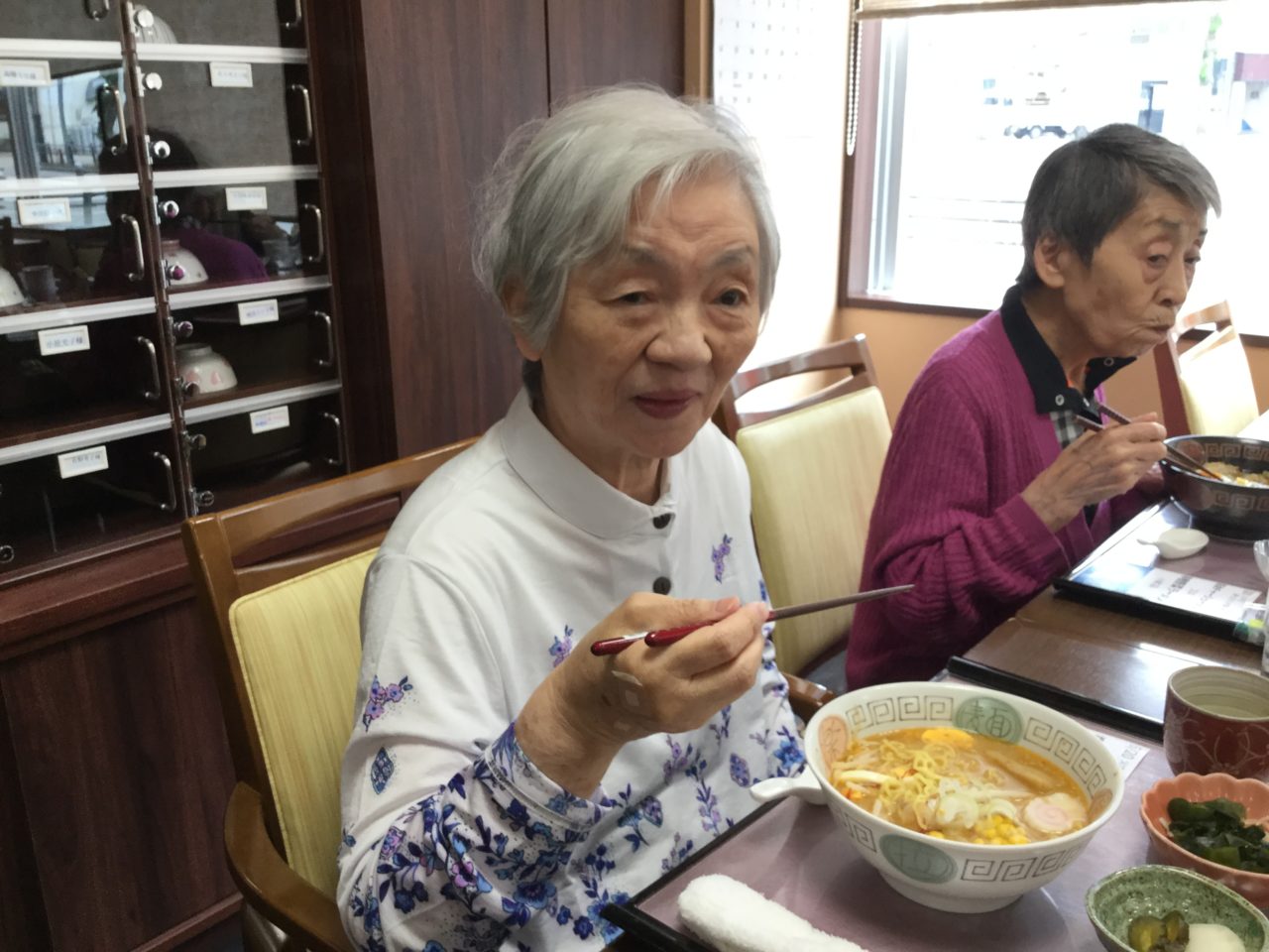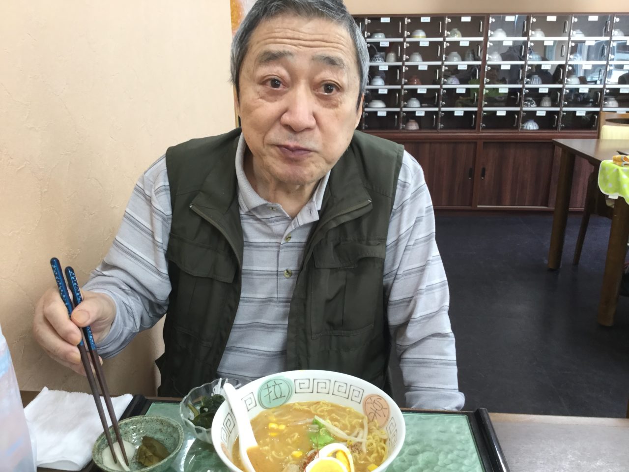 さて、横手のあば達、注文をとったらラーメン屋の店主に伝え、運ぶミッション開始です!!とその前に割烹着が縦結びだよと笑いながらMさんに直してもらっています?