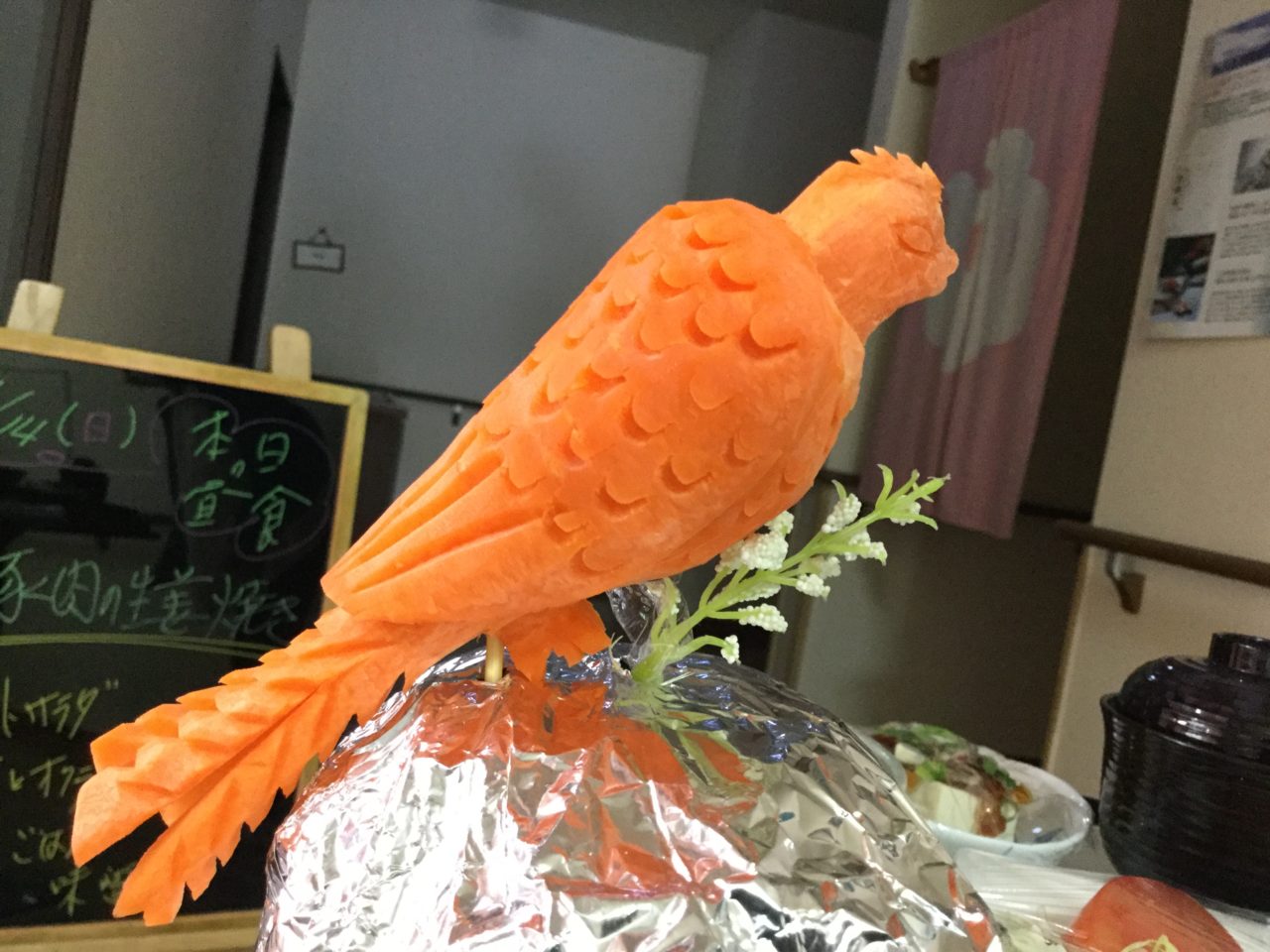 みなさん興味津々で近づいて見て「小鳥だわ!」「すご〜い人参?で作ってる!」ととても喜んでくださっていました❤️