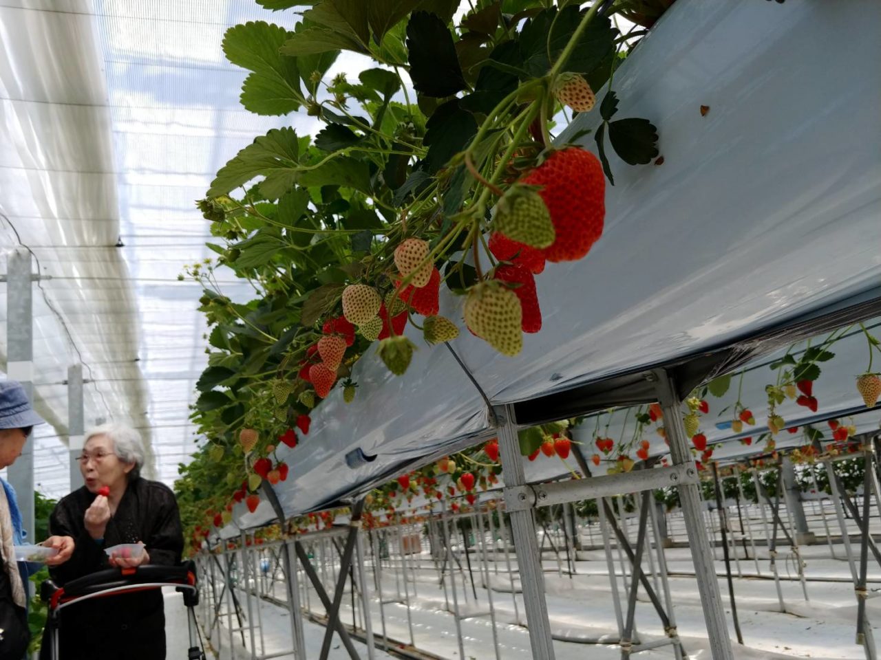 ハウス内では摘みたての完熟いちごを食べ、いちごソフトも楽しみました?