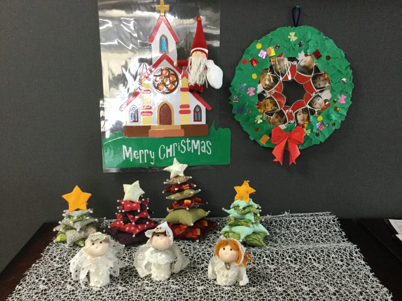 横手マリア園の園児たちからの贈り物のクリスマスリースも加わってますます癒しの空間です✨