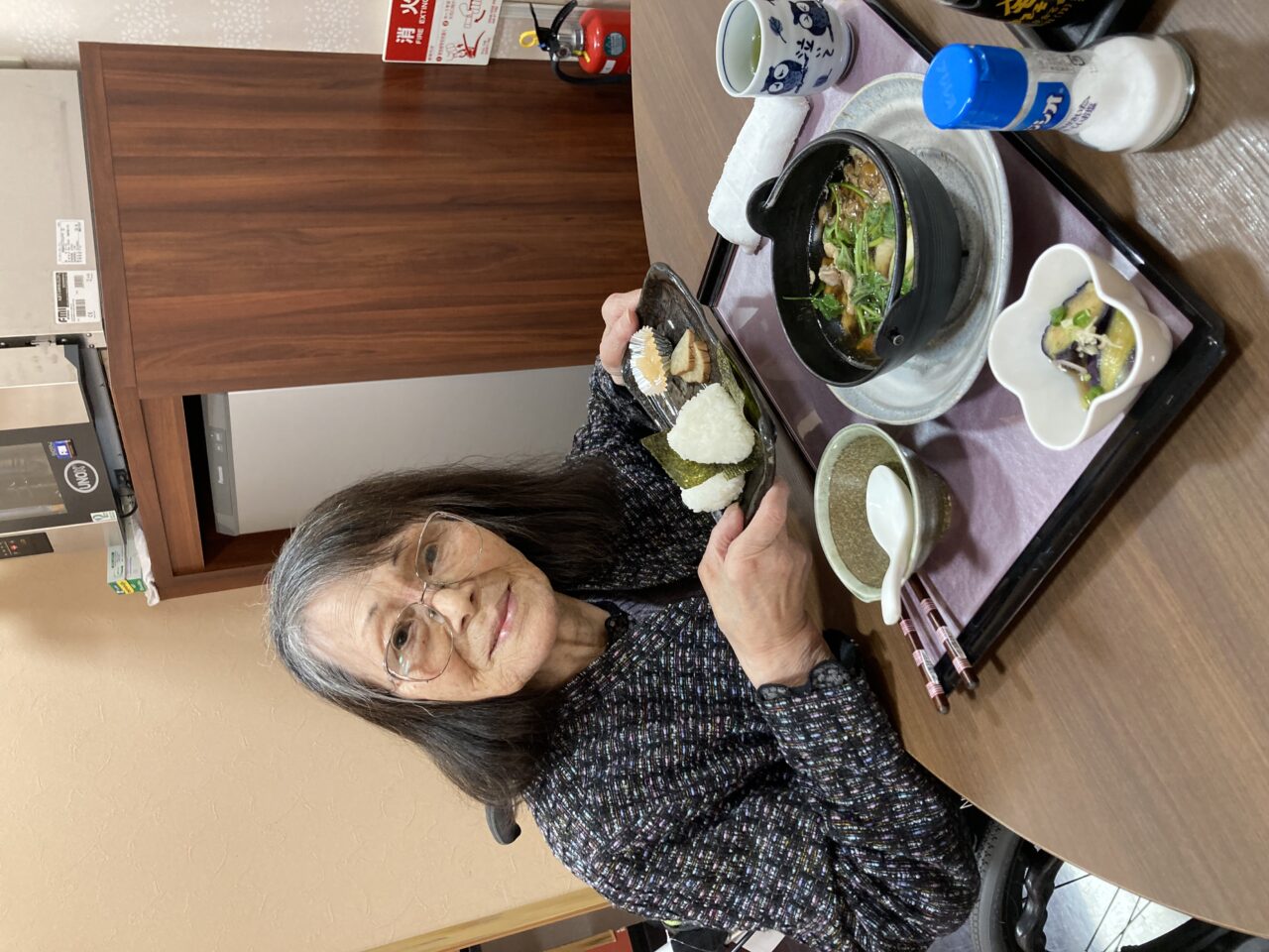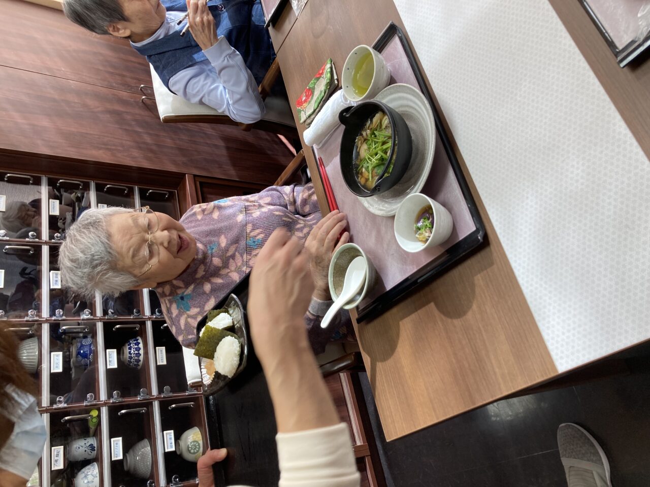 きりたんぽ鍋とおにぎり、ボリューム満点。美味しいもの食べて、運動して、笑って、いい表情。