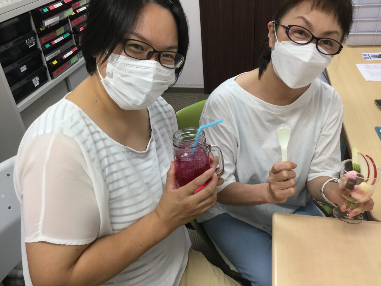 今日のラウンジでは、辻パートナー手作りの紫蘇ジュースとパフェを皆さんと美味しくいただきましたよ?