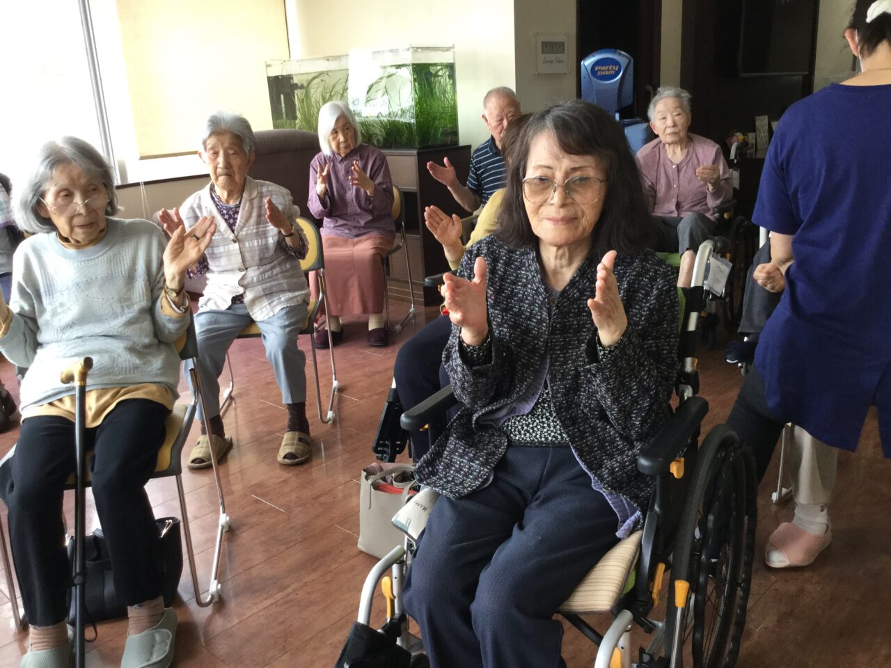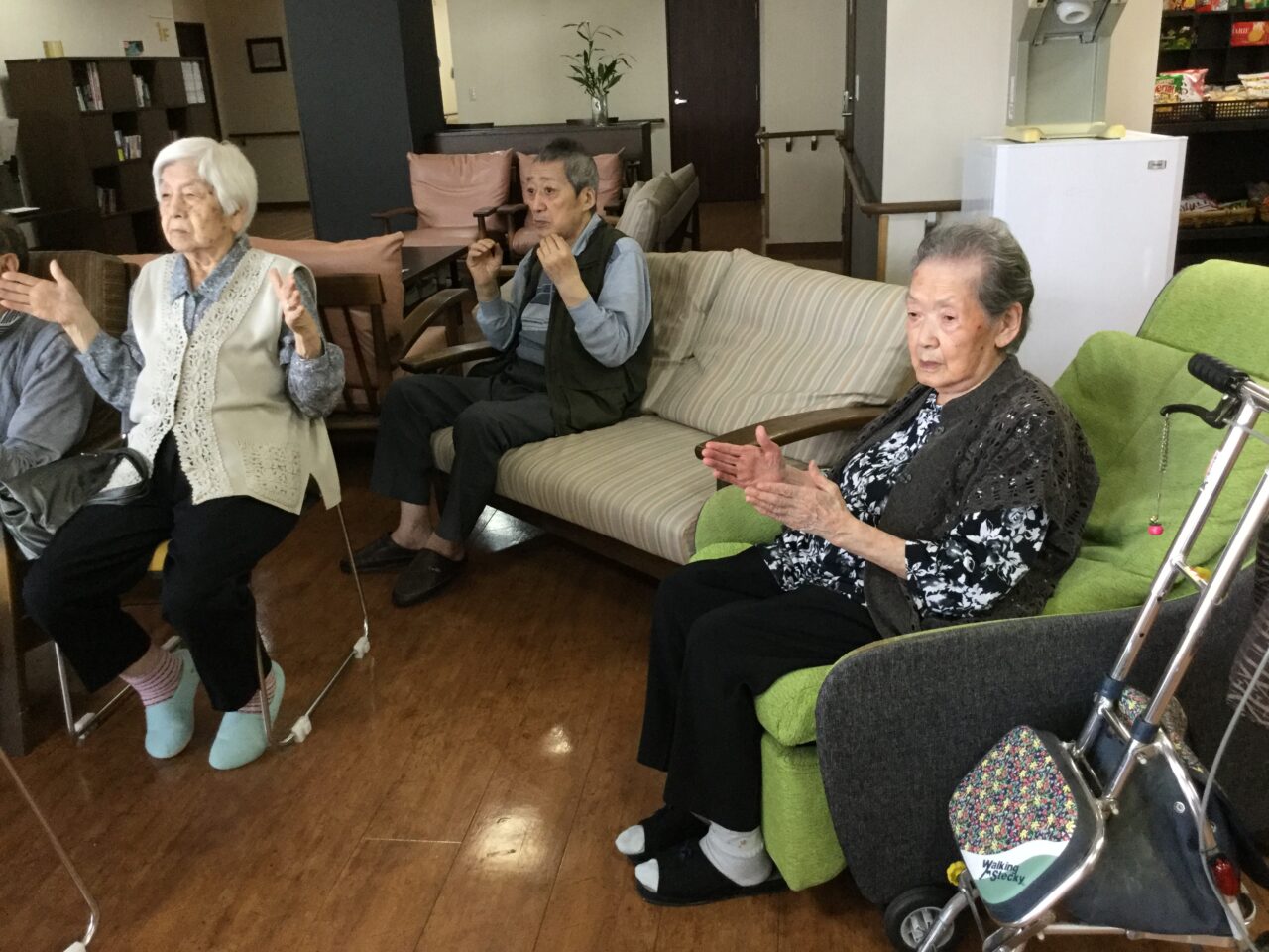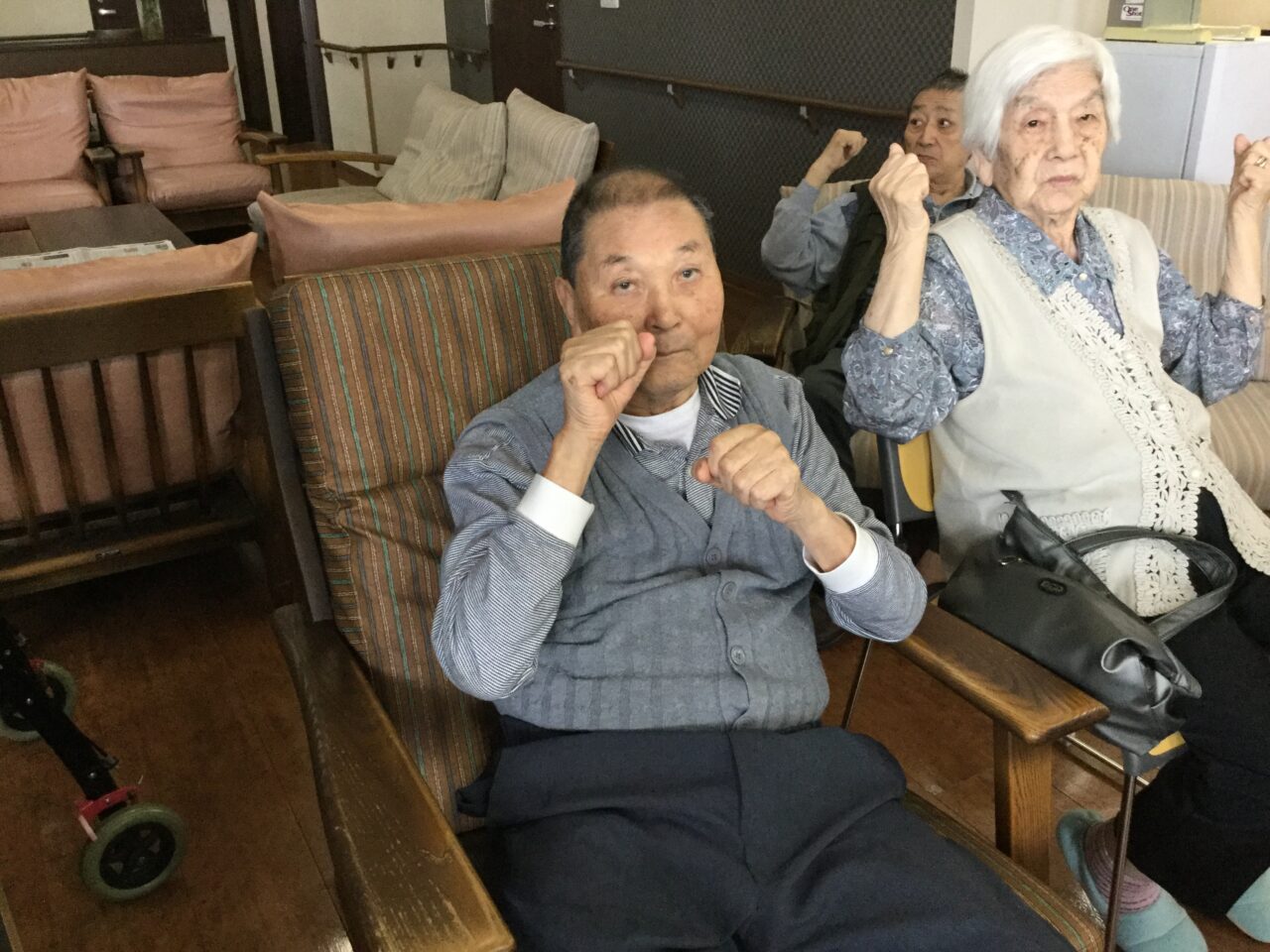 体を崩し心配してましたが、しっかり回復して「オレ100まで生きるなゃ~」と話してます😊皆さまと一緒に手足を動かし楽しそうにしてる姿が見れて、安心できました。お陰様で有り難うございます。