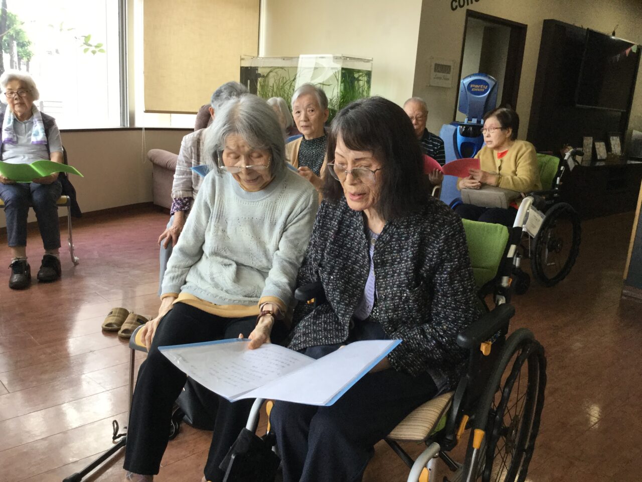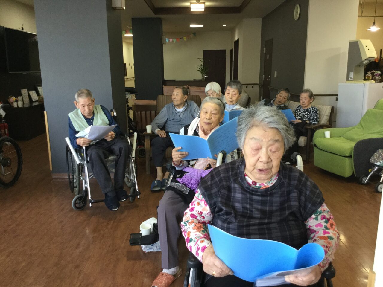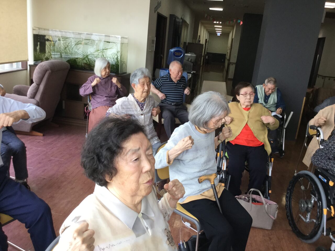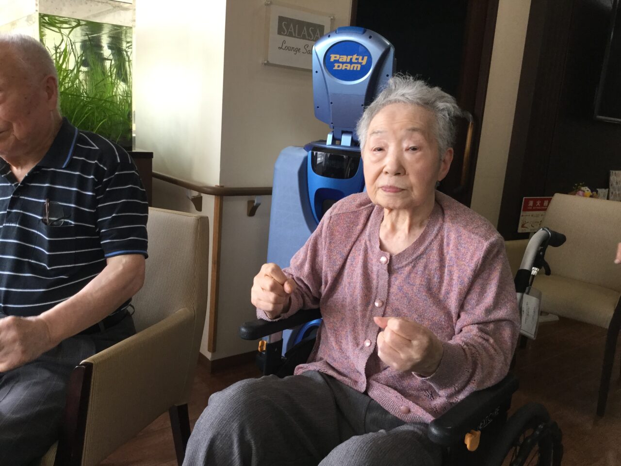 体を崩し心配してましたが、しっかり回復して「オレ100まで生きるなゃ~」と話してます😊皆さまと一緒に手足を動かし楽しそうにしてる姿が見れて、安心できました。お陰様で有り難うございます。
