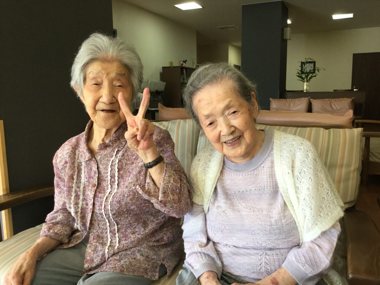 先日101歳を迎えられたSさんと、10月に101歳を迎えるKさんと二人並んでお話中です(*´꒳`*)なんだか二人いるだけでとっても明るい気持ちになれるので思わず「二人揃って201歳!!」とお話しすると仲良く手で201を作ってくれました⤴️✨