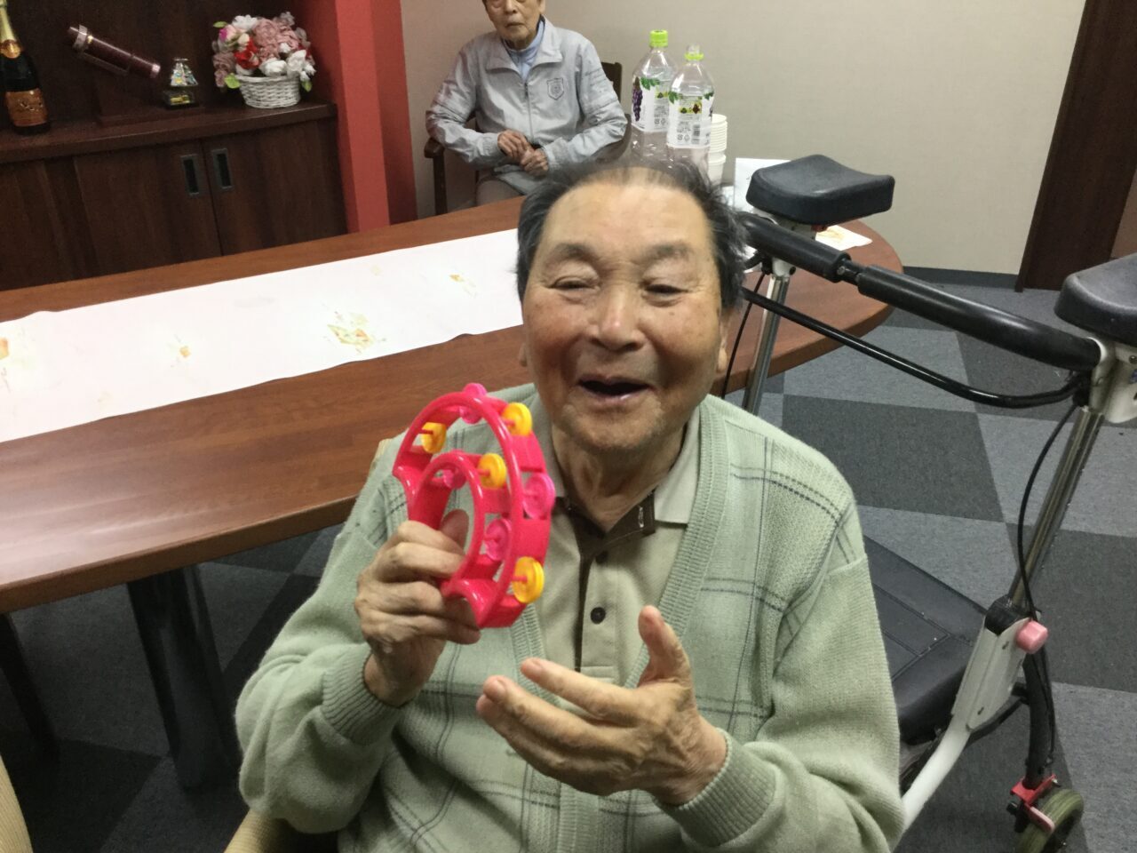 お次はタンバリンを持ちながらカラオケを使って体操レッツゴー??