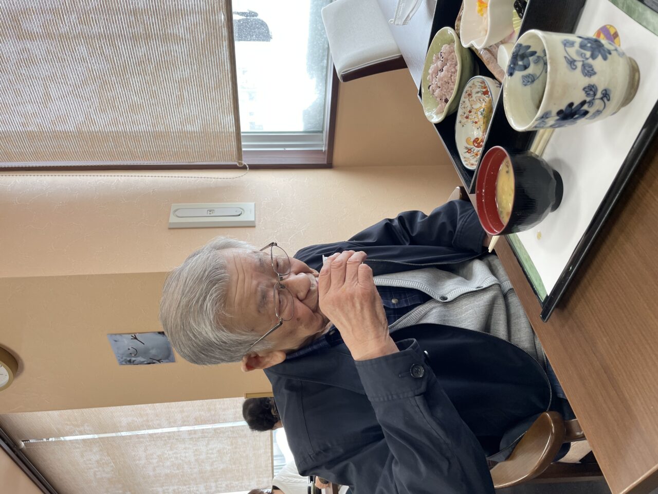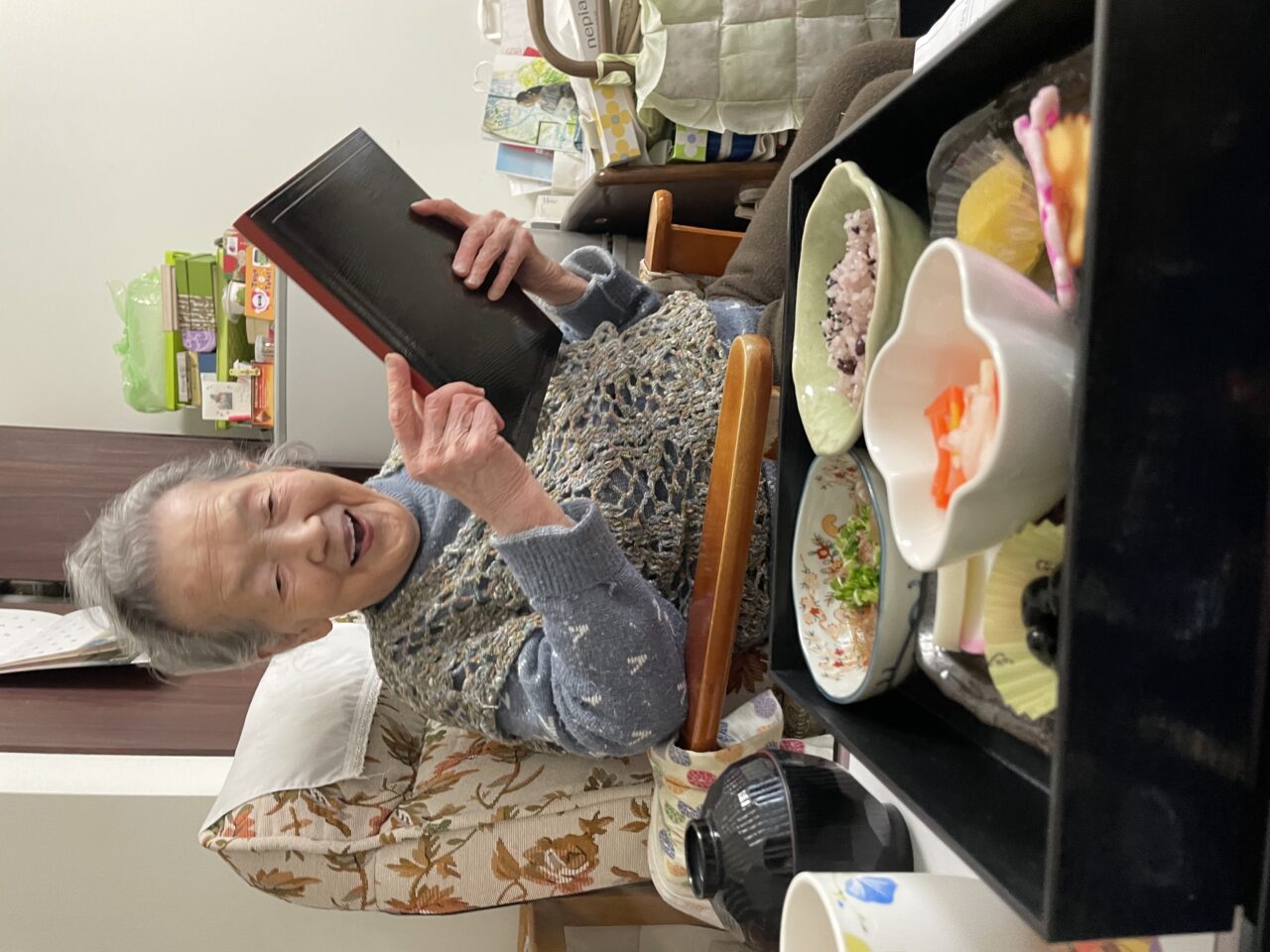「ペンあるかい?」とレストランで職員に声をかけるKさん、「今いいのが浮かんできてね、書き留めておこうと思って」