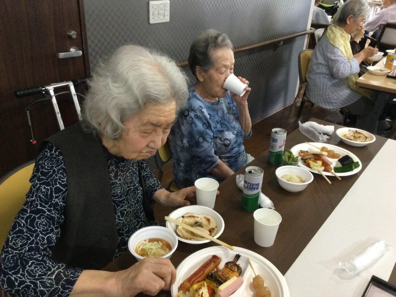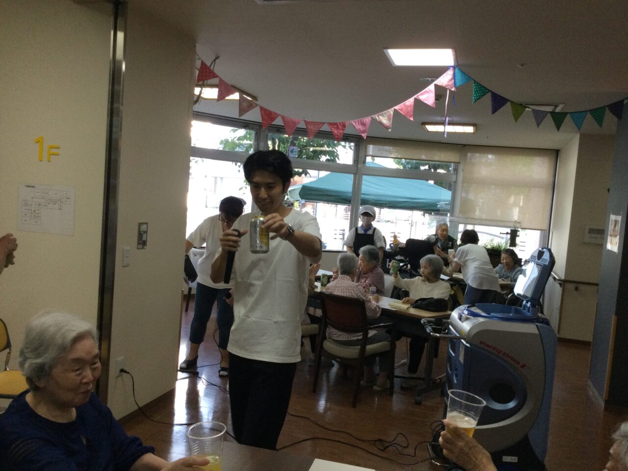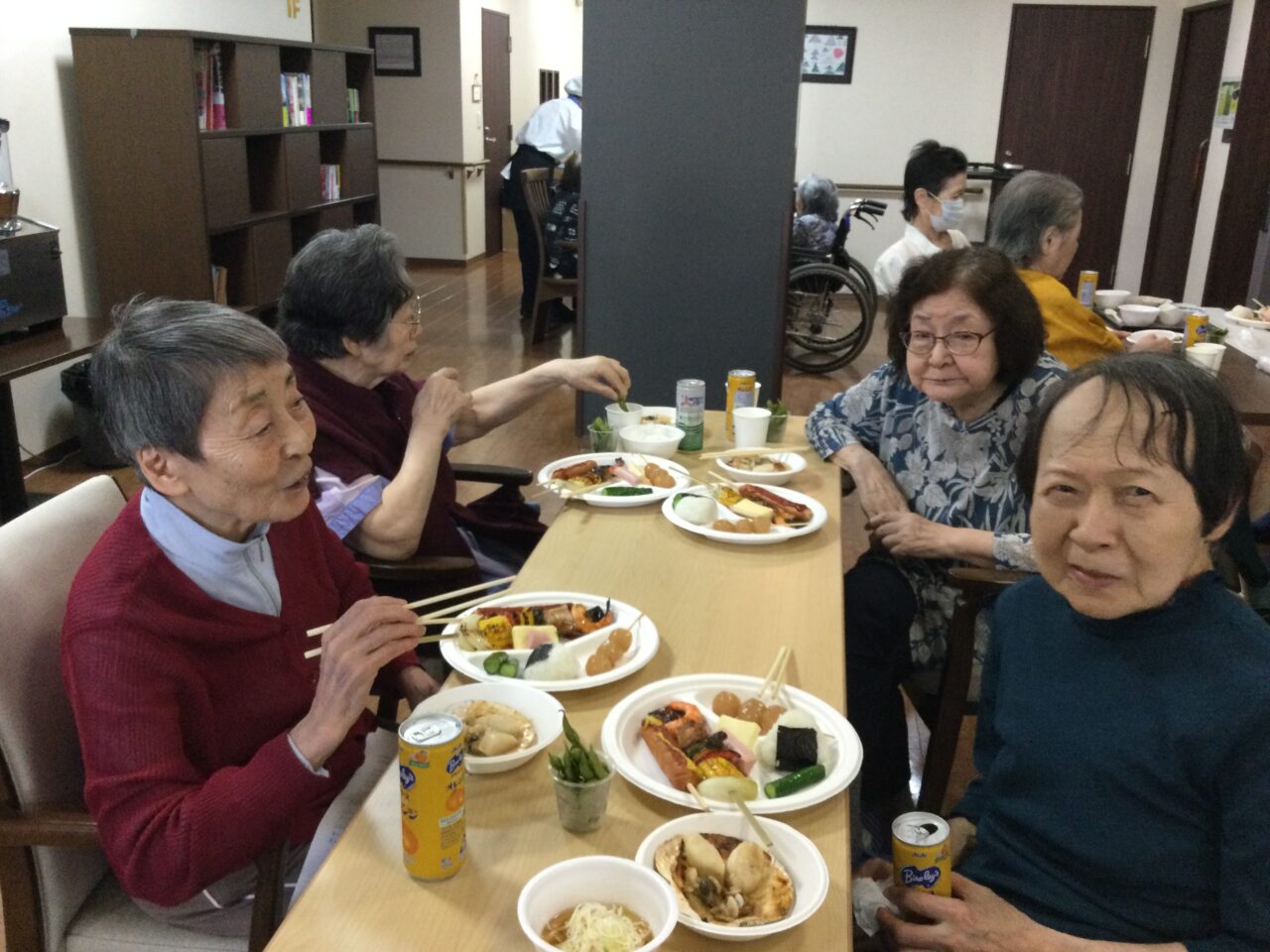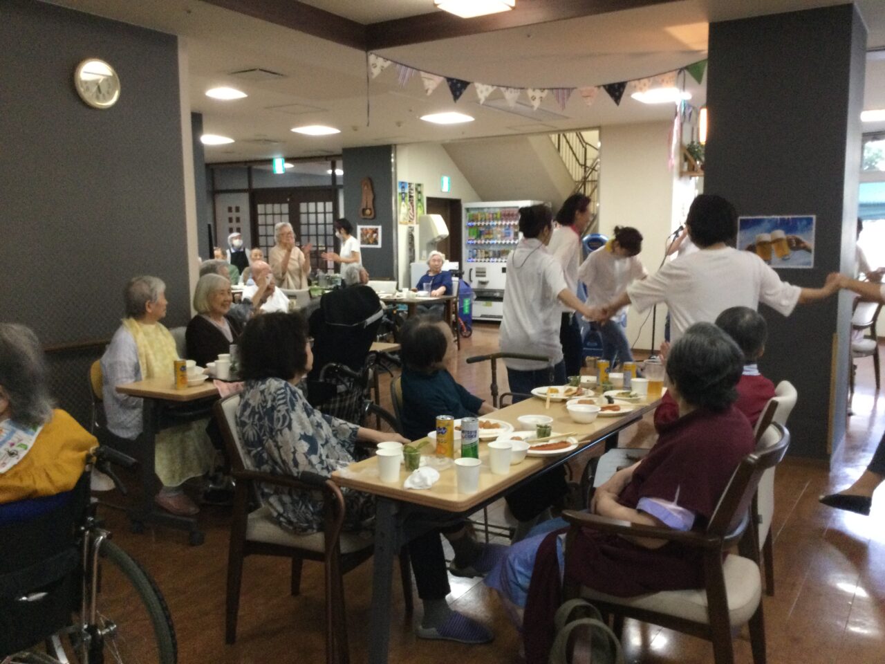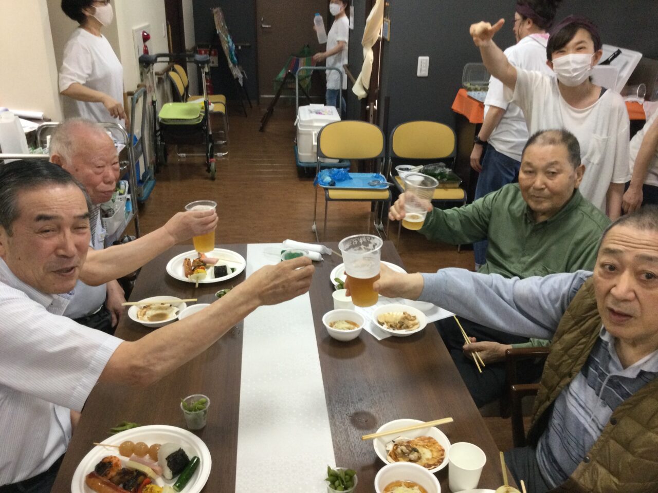 それでは!よ〜し食べるぞ〜ということで飲んで食べて歌っての開始です!施設長の乾杯の挨拶でスタートです??