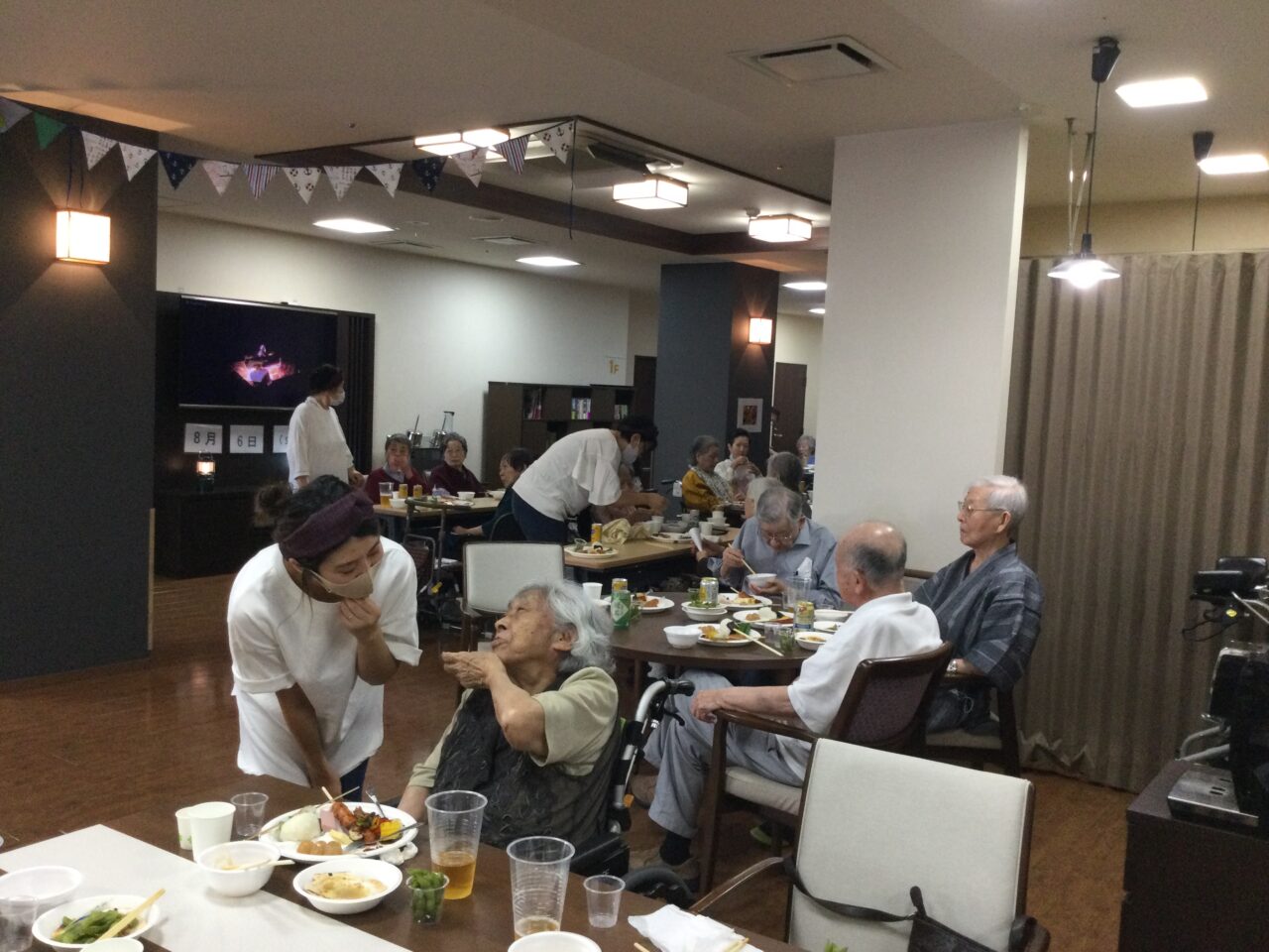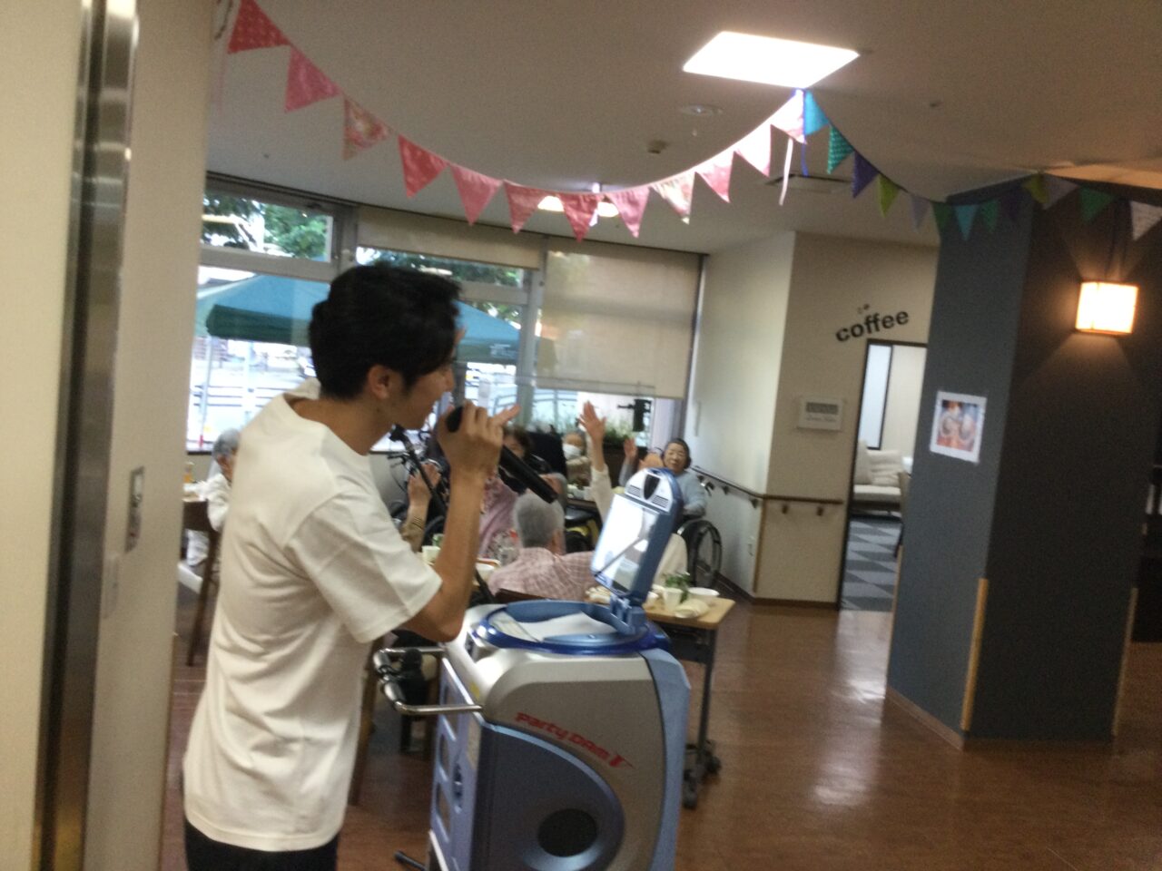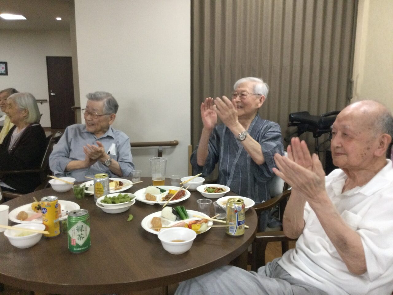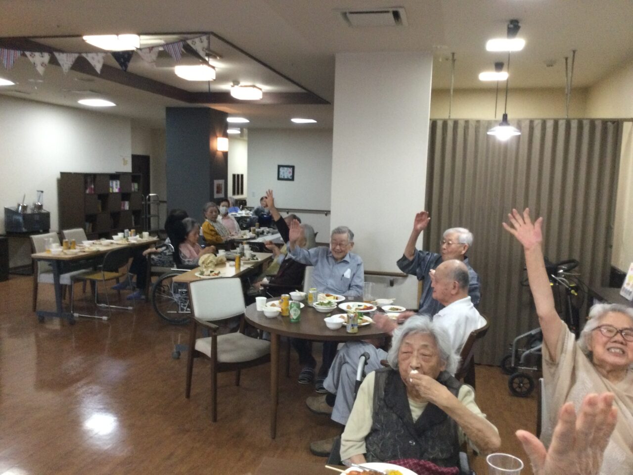 それでは!よ〜し食べるぞ〜ということで飲んで食べて歌っての開始です!施設長の乾杯の挨拶でスタートです??