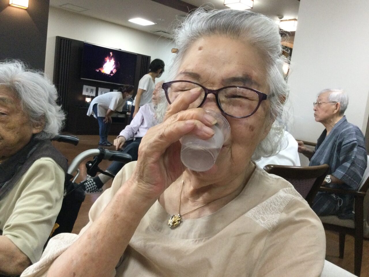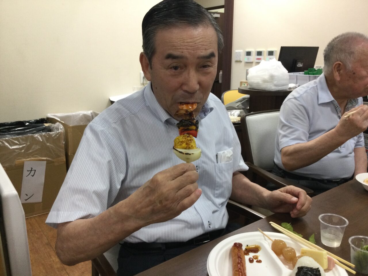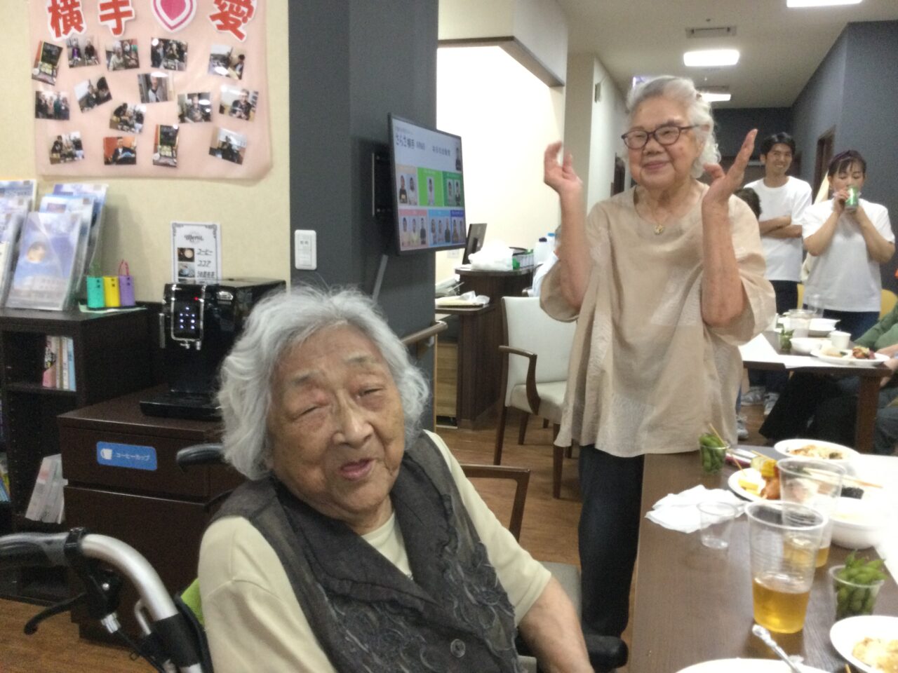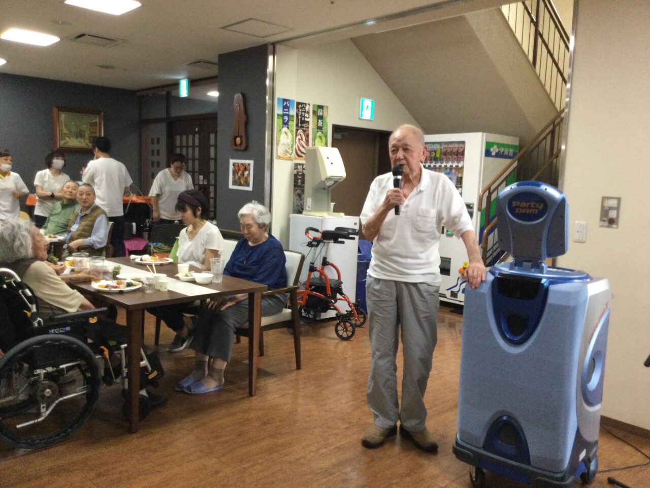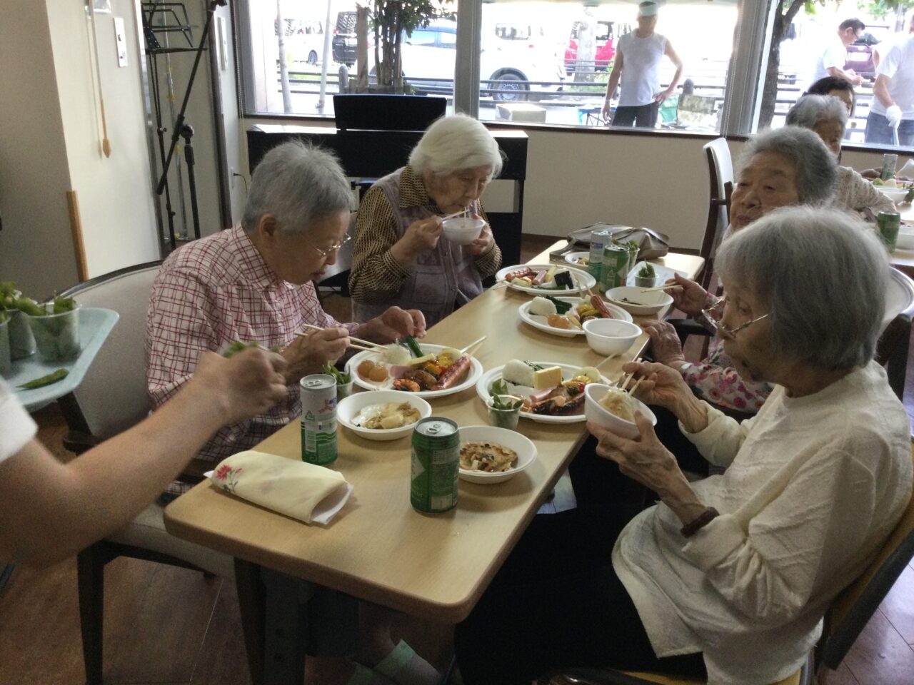 それでは!よ〜し食べるぞ〜ということで飲んで食べて歌っての開始です!施設長の乾杯の挨拶でスタートです??